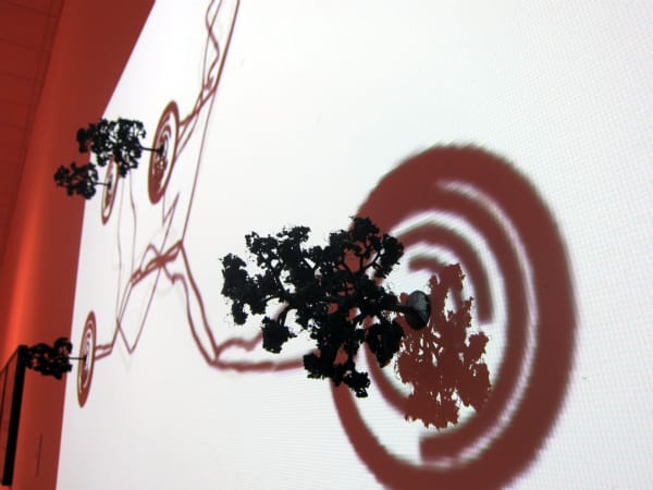 I was most engaged by the video art, which included Julia Oldham’s “Antimatter Twin,” a lovely study on physics and self following a woman and her “antimatter conjugate”; Christopher Smith’s “Cutting In,” a video installation of paint pouring like rain streaking a window, like a work in a never-ending state of creation; and Anton Cabaleiro’s “Synchronized Landscapes,” where miniature trees hover like spools on a whirring tape deck while a topography develops from layered sound and coarse projections. While a lot of the paintings seemed tired and the installations too literal, the video work was refreshing in the way emerging art should be, and proof that the AIM program continues to identify some incredibly capable artists.