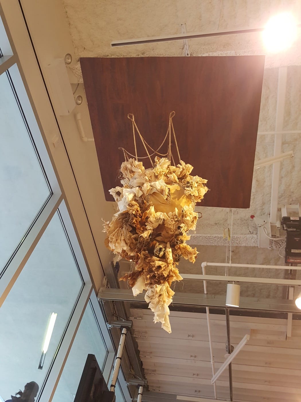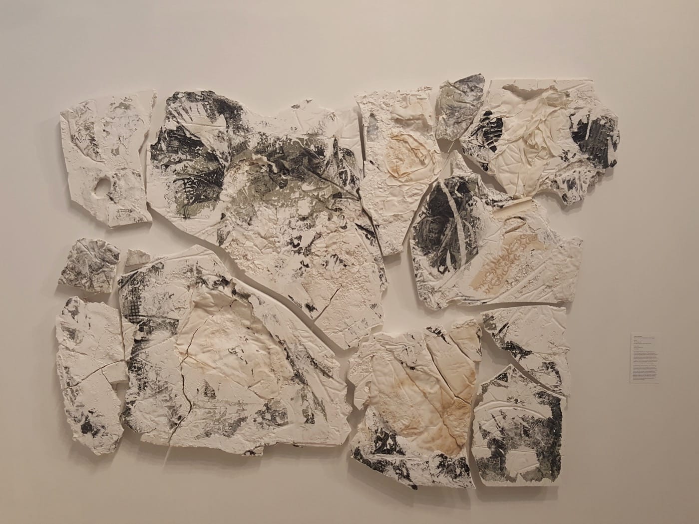Sara Jimenez, in similar metaphorical fashion to Olujimi’s work, has installed objects that presume a bodily presence. With “Pasalubong” (2016) she has hung a chair upside down, one foot of it barely touching the square of wood flooring above it, while the rusting frame is festooned with fabric that blooms uncontrollably like a body that has burst. Then with “Parts of a whole” (2016) Jimenez makes plaster casts of furniture from her family home, but with bits of fabric captured in the plaster like vestiges of memories that trail after the artist.