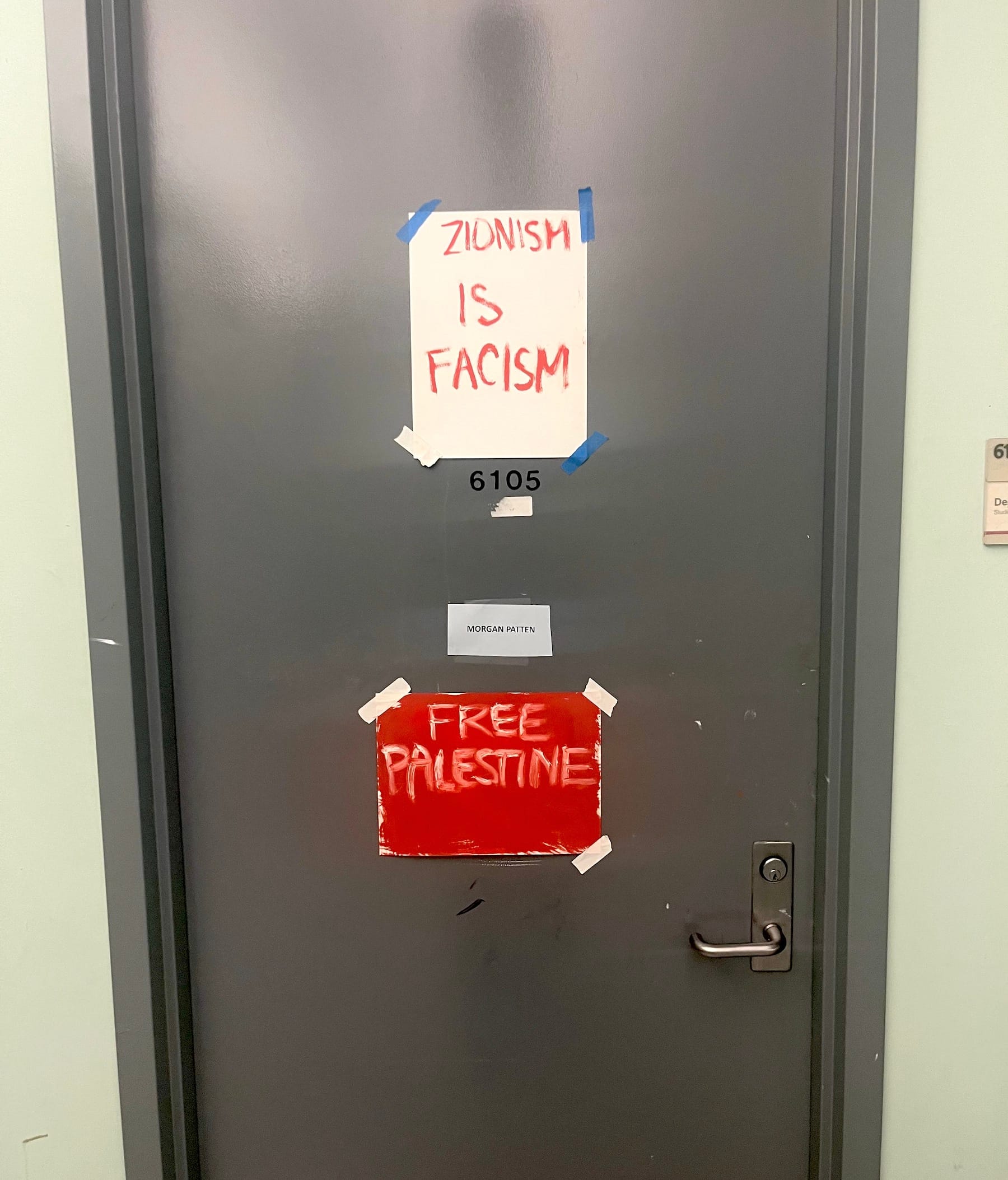 In mid-October, amid Israel's deadly ongoing bombardment of Gaza, first-year MFA student Morgan Patten taped two hand-painted signs to the door of her Brooklyn College studio. In red lettering, they spelled "Free Palestine" and "Zionism = Fascism." The pair of posters went unmentioned until a November 18 open studios event, when two campus police officers told Patten to remove the signs, citing school policy. The student complied, but the incident left her with the sense that her voice had been suppressed.