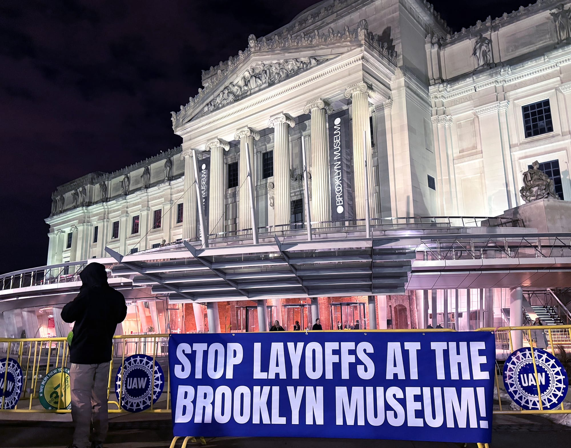 Editor's note 3/25/6:15pm EST: This article was updated with the additional information that at least five non-unionized Brooklyn Museum workers were given layoff notices in February.