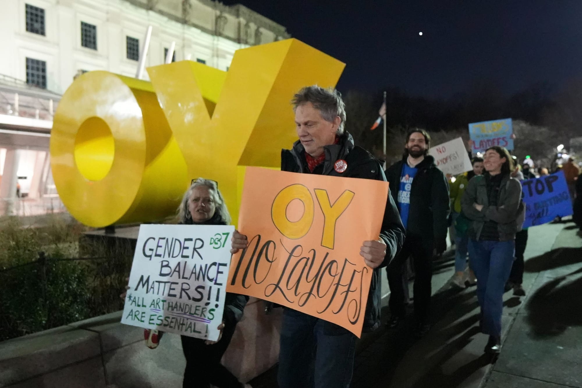 The museum's unions are protesting the sweeping staff cuts that impacted 47 employees after the institution announced a $10M budget deficit.