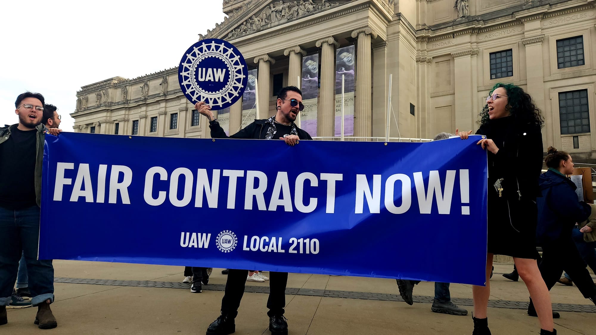 "We're not going away and we're going to keep making ourselves visible," the workers said while picketing a museum fundraising event for the second time.