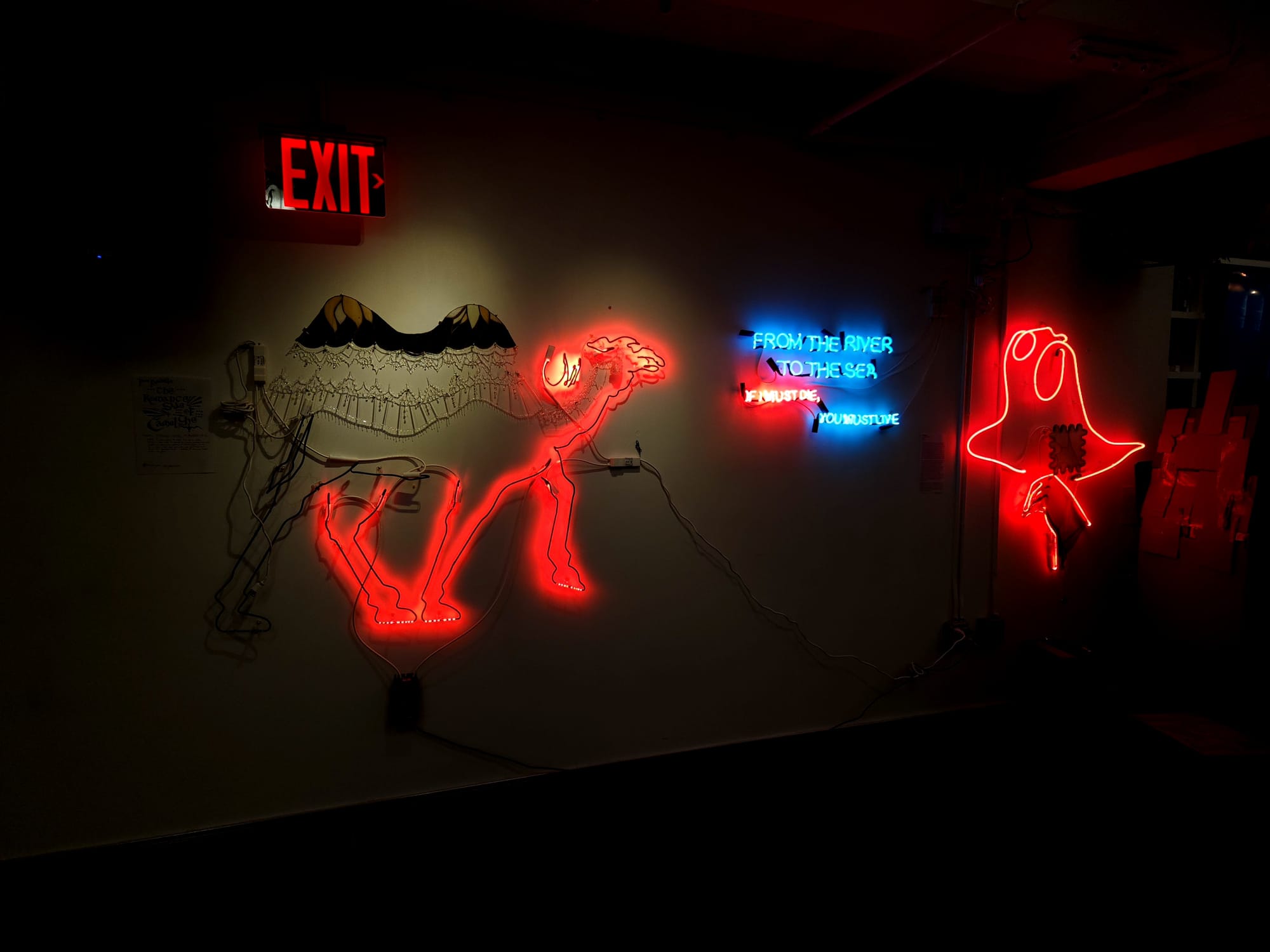 UrbanGlass's board excluded Garip's neon piece "YOU MUST LIVE" (2024), which depicts the popular expression of Palestinian solidarity "from the river to the sea," from the staff exhibition Fundamental Particles last March. The phrase, UrbanGlass's board told Hyperallergic in a statement at the time, was “received by many — including members of the UrbanGlass community — as a literal or stochastic call for violence against them."