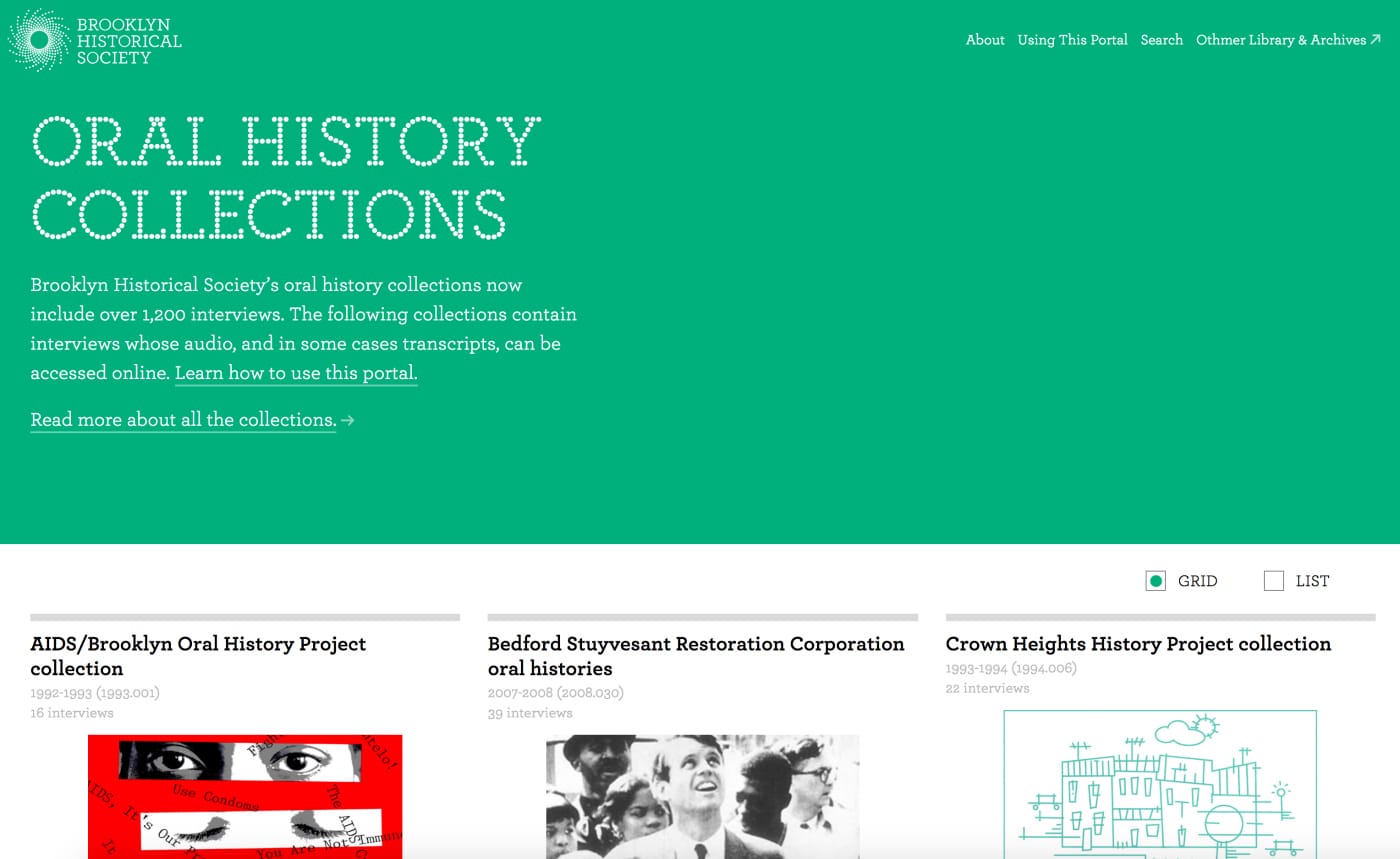 Access the Oral History Collections portal online through the Brooklyn Historical Society.