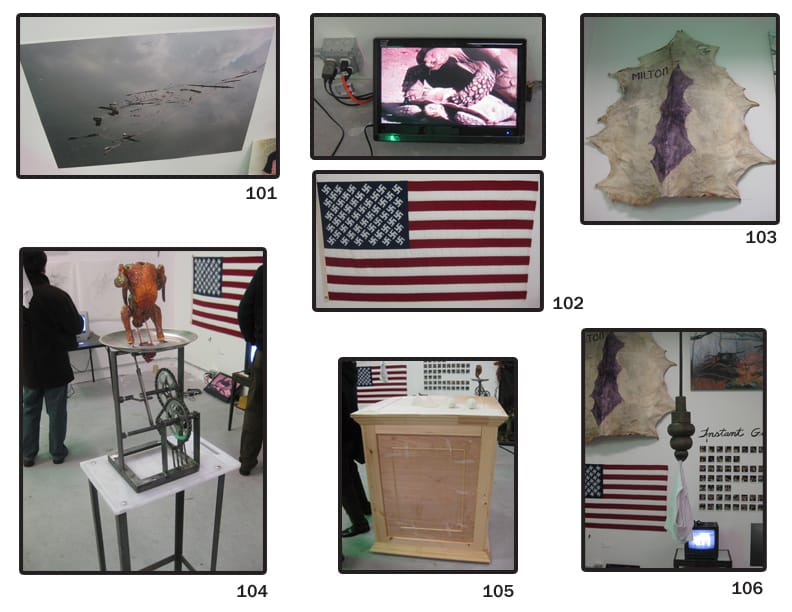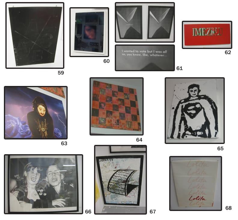 88. Unknown – Make fun of Julian Schnabel, the Johnny Fingers of painting, and I’m on your side. Creative Time’s Sarah Burkhart pointed out the double fantasy genius of this piece. The photo is taken from the NYTimes’ “A Night Out With…” The Bruce High Quality Foundation during the Miami art fairs last year.