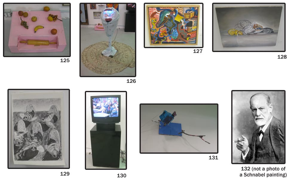 131. Gretchen Karn – Not very good, but totally goes with the Julian Schnabel underneath it. Points!
