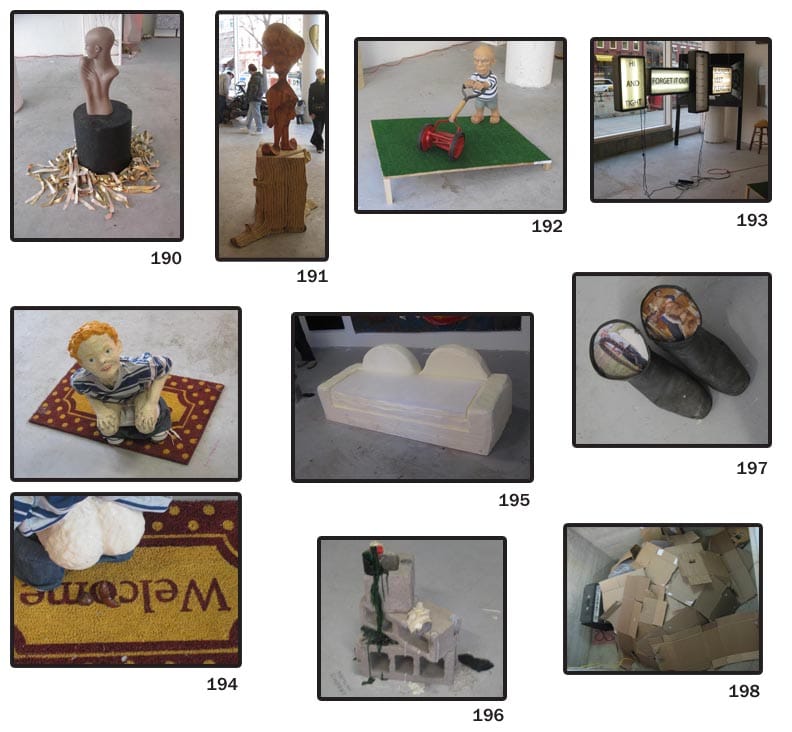 The reviews never stop on Hyperallergic: 176. David Carlin - Ready for the wound. Lovely, actually.; 177. Aga Olisseinov - Looks like a pagan ritual from The Wild Wild West TV show. Love.; 178. Ann Gillan - To paraphrase and twist Bryan Ferry: Just enough is never too much. I want this …