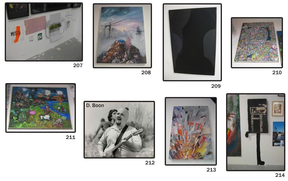 212. Rita Ackerman – Art about selling the bones of Michael Jackson just makes me want to listen to the Minutemen’s Political Song for Michael Jackson to Sing which worked as well before MJ’s big slumber as it did after. (Damn. Somehow lost my photo of this one. I did, however, find a great photo of D. Boon on the internets.)