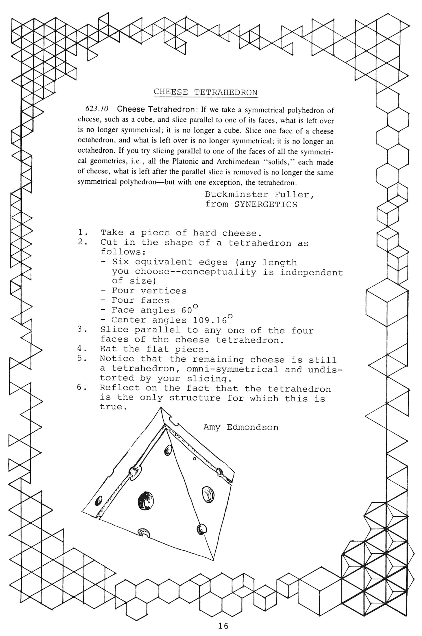 Re-issued on the 125th anniversary of Buckminster Fuller’s birth, the cookbook Synergetic Stew — Explorations in Dymaxion Dining was originally presented to Fuller as a gift on his 86th birthday, in 1982, by the staff of the Fuller Institute in Philadelphia. It’s not the sort of cookbook you’d buy — then or now — for the recipes, unless you’re desperate for dated instructions for shrimp salad or chocolate mousse. Synergetic Stew is instead a document of a magical, idiosyncratic life, dominated publicly by heady science but filled in equal measure with “light, wild things.”