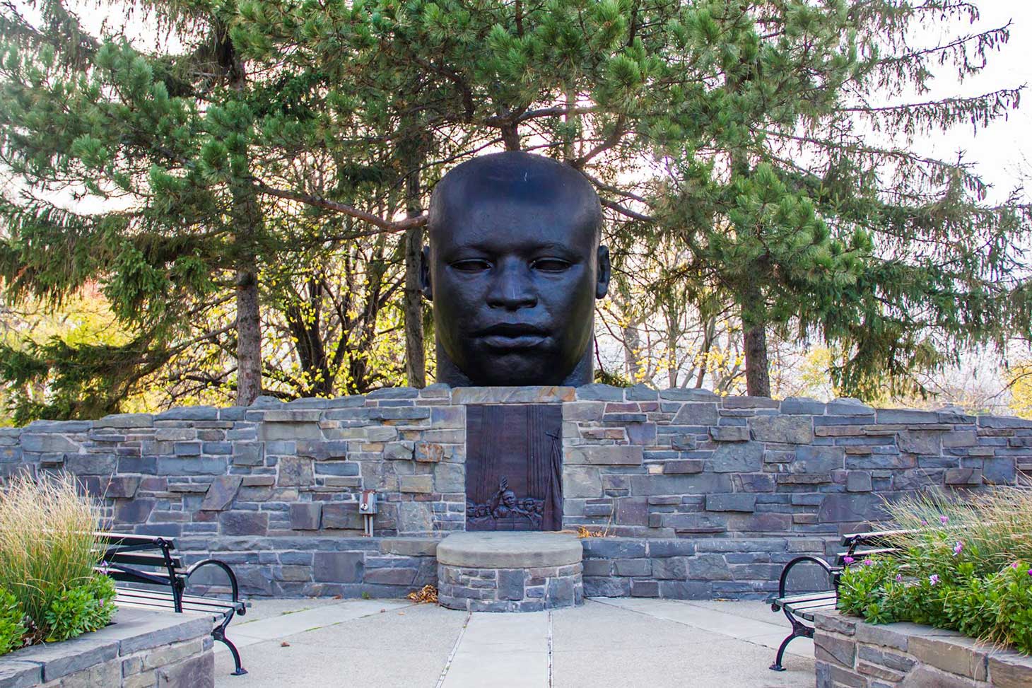 Statues are a great way to remember our fallen heroes just as they exist in our romantic imagination: frightening, dead-eyed, and lacking any distinctive identifying features. At least, that seems to be the conceptual conceit of a Buffalo, New York memorial installed in 1983, apparently intended to recognize civil rights leader Dr. Martin Luther King Jr. The eight-foot-bronze monument, created by artist John Woodrow Wilson, is a giant, terrifying, matte black head that overlooks MLK Park, and has been the subject of a recent attempt to create something a little less … impersonal.