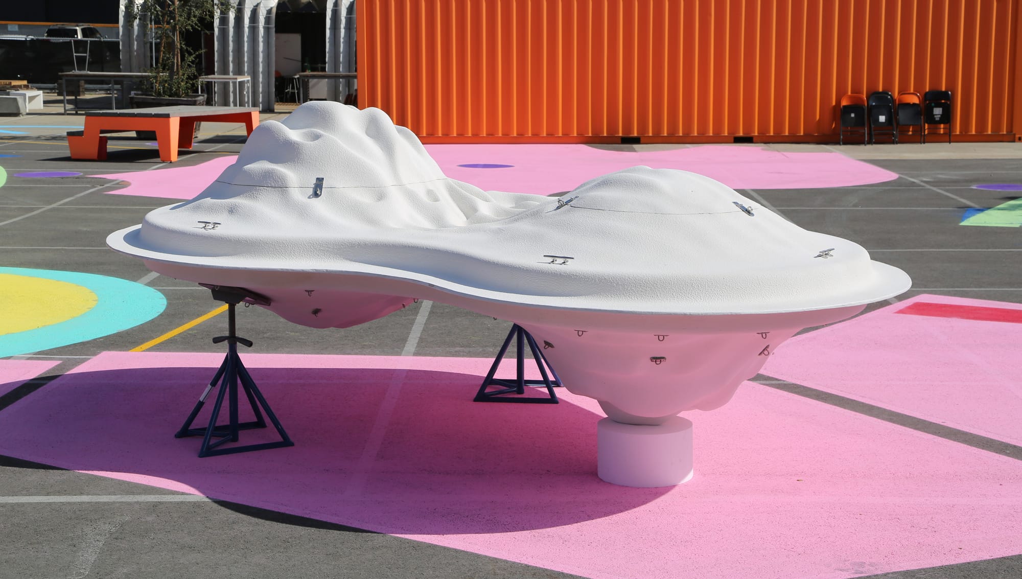 Supported by the California College of the Arts’ (CCA) Center for Impact, and set to launch late summer in the San Francisco Bay, the Buoyant Ecologies Float Lab — a contoured, bean-shaped white buoy, approximately 13 feet by 8 feet long — looks like a cross between an ice floe and an alien pod. In fact, the buoy is a human-researched structure whose design evidences the importance of the artistic imagination for developing an architecture adequate to the planet’s climate future.