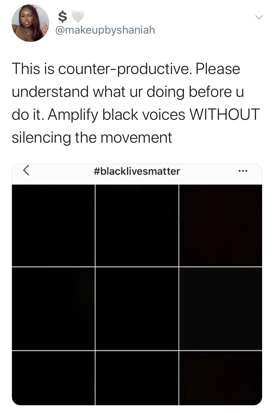 I woke up on Tuesday feeling bitter about the black squares dominating social media. Jamila Thomas and Brianna Agyemang, two Black women music executives, originally began the campaign #TheShowMustBePaused to draw attention to the ways the music industry profits off of Black talent. Though meant to be a show of solidarity against the various brutalizations of Black people, there is something inherently violent about the squares’ cumulative effect.