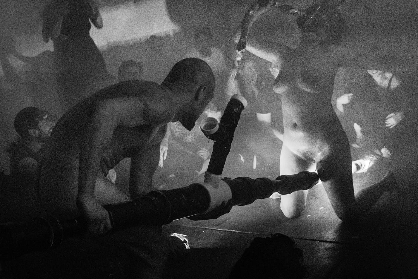 As I went deeper into photographing my subjects I found a common thread between performers and spectators: they would give themselves over to both sexual and visual ways of participating.