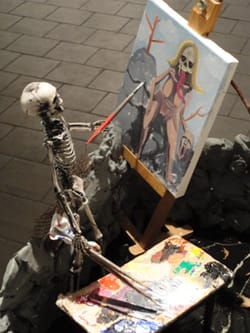 This comic scene is the perfect introduction to some intriguing new work on view in Bushwick this month. Beat Night this past Friday showcased how many of today’s artists are drawing upon various forms, styles and traditions to bring new monsters to life. This isn’t just about Halloween. There is a perennial appeal to monsters and other beasts that keeps horror movies profitable, fake blood on the shelves at Ricky’s party and makeup store year round and the gothic is always a potent theme for visual art.