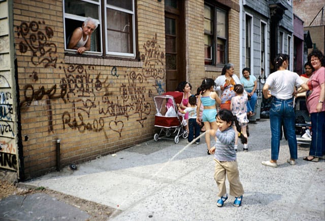 For instance, there’s Hybrid Theatre Works’ site-specific performance tour Borderline Bushwick. There are journeys into community history with photographer Meryl Meisler and writer Vanessa Mártir (Defying Devastation: Bushwick in the 80s) and Daryl-Ann Saunders (Pioneers of Bushwick, a series of portraits and stories presented at Wyckoff Heights Medical Center). There are discussion panels and General Assembly-esque non-panels like a 24-hour dialogue on a traffic island. There’s a group show at, and by, PS 123. There’s stop-and-frisk street theatre.