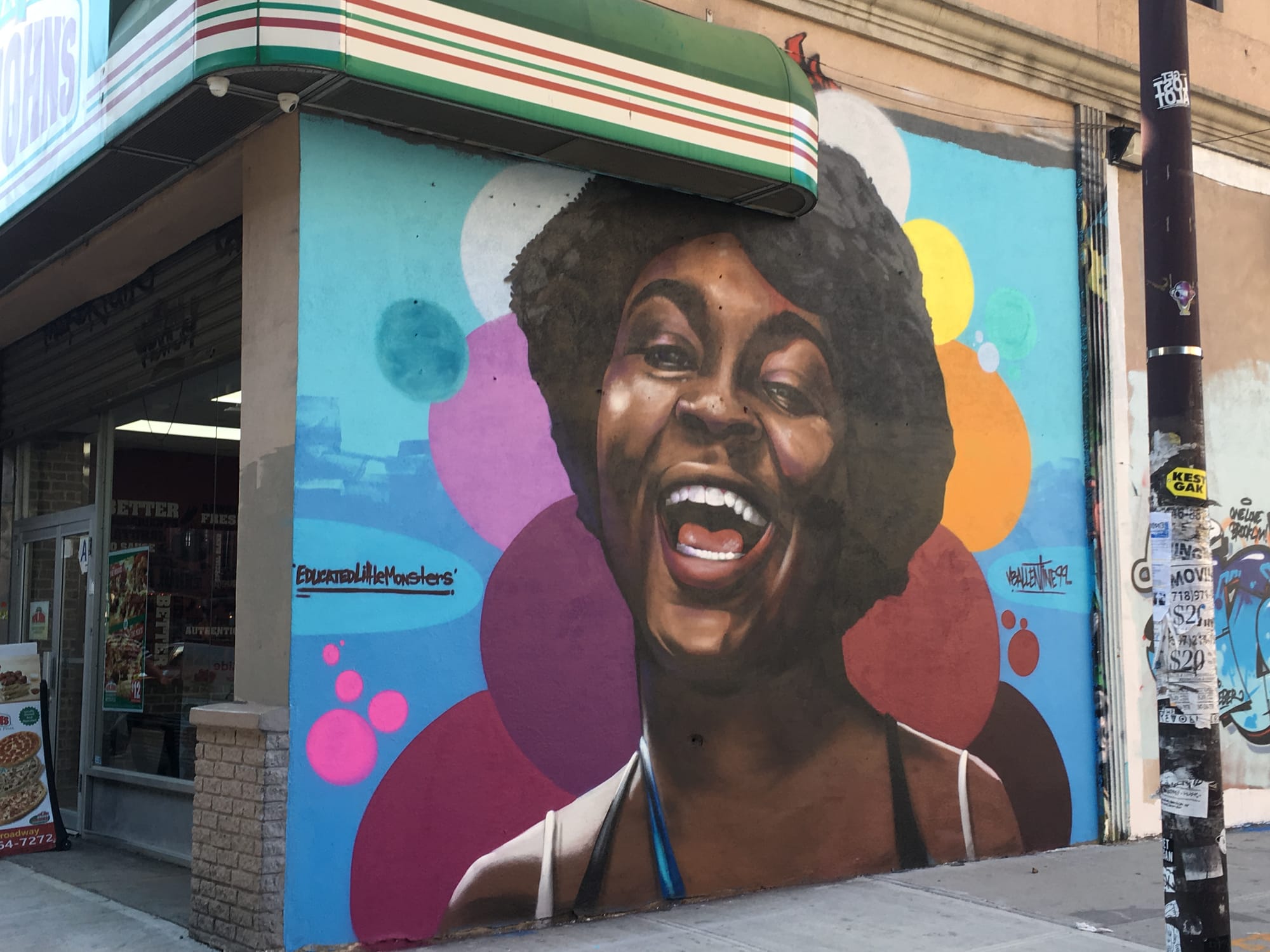 Street artist Vincent Ballentine created the official mural for the festival, located at Broadway and Willoughby Avenue in Brooklyn. The mural features a Bushwick-born young participant in Educated Little Monsters’ programs.