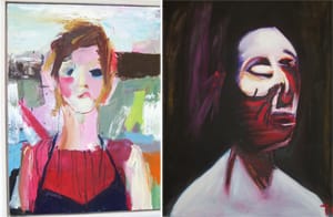 On the second floor of 119 Ingram studio complex, Timothy Rollin Rickerill gazes at the darker side of war. His oil painting “Dead 19” (2009) is based on a photo of a war corpse. His stylized depiction of rotting flesh is not for the feint of heart, but it was another formally commanding depiction of an abnormal and unusual face. Although the fauvist label doesn’t match the more gothic tones and mood of the work, it reflects a similar artistic boredom with the perfected face of fashion magazines. The influence of English painter Francis Bacon is evident in his work but so are other influences, like Native American masks.