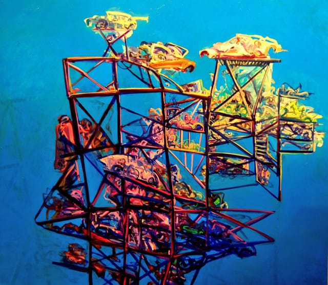 Four painters represent unique approaches to representational painting in this small survey. Perhaps their only similarity is their engagement with the abstract image. Brown, Litt, and Nichols disrupt the picture plane with high-velocity color and pattern, belying a close relationship with abstraction. Law provides a counterpoint with well-observed beach landscapes in chromatic gray.