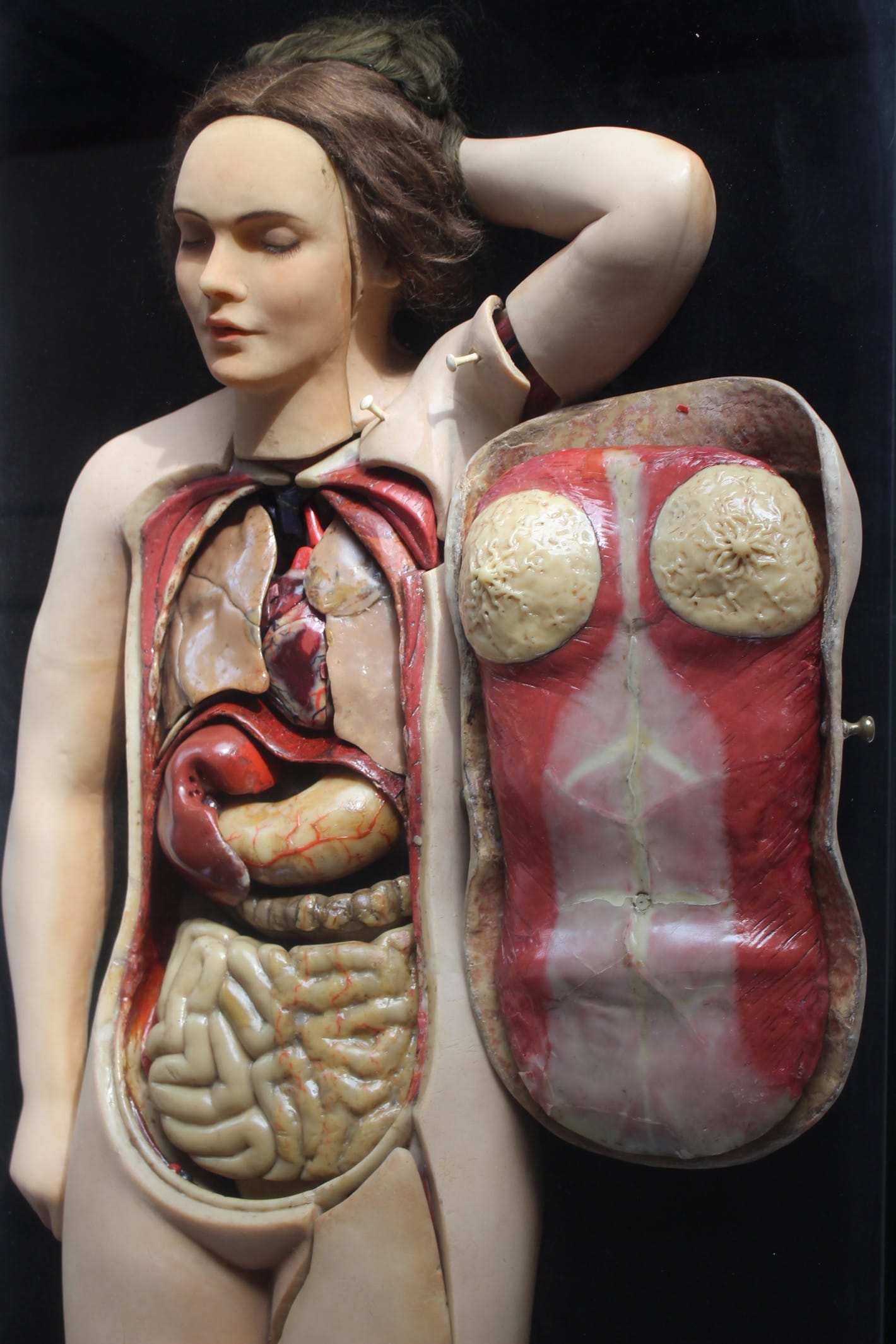 Playing with these general/abstract, specific/detailed productive tensions, Le Bon’s sleekly presented, well labeled, magpie mix-up is not only sizable, but also diverse, bringing together magnificent troves of bric-à-brac: a bevy of old cowbells, oodles of hourglasses from Jacques Attali’s collection, gory anatomical models like the “Anatomical Venus” (ca. 19th century) which is suitably hoary in derivation, cantankerous stuffed animals, gorgeous collections of entomological specimens, jewel-like gemstones, many golden (but disappointingly static) automata, a wide selection of lovable sardine boxes, Andreas Gursky’s amazing “Amazon” (2016) digital photograph, rooms of marginalia knick-knacks, seashells (beloved by Renaissance collectors for their intricate designs that seem to be the work of an ingenious, infinitely playful, craftsman), functionally inexplicable rhizomes of pink coral, and a bogus unicorn horn. That’s just a small part of the entire exhibition. So, my leisurely meandering through the promiscuous paths of Cabinets of Curiosities promoted a feeling of the world’s infinity of things running into my more parsimonious sense of aesthetic pleasure.