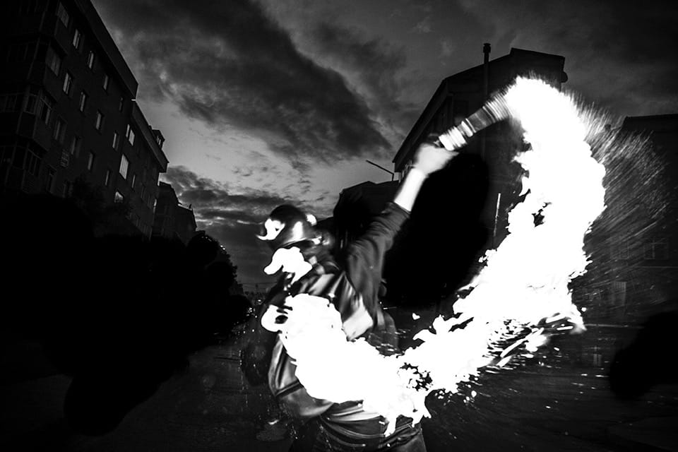 Control is more of an artistic book, or at least represents a departure from Erdoğan’s earlier journalistic style. It depicts an imaginary night out in the streets of Istanbul, edited from hundreds of photographs he took between 2014 and 2017 in the Gazi district of the city. In his introduction to the book, Erdoğan explains how he rented an apartment and lived among his subjects. Gazi is known to be an old shanty town, cum ghetto, almost exclusively inhabited by Kurdish and Alevite minorities, along with a growing influx of refugees. Historically speaking, it is also considered the headquarters of the left-wing, revolutionary struggle against the Turkish state, with pronounced sympathies for Kurdish independence. It is considered one of the most dangerous districts of Istanbul, commonly viewed as an autonomous zone which houses much underground activity. The Turkish government has regularly tried to rehabilitate Gazi — most recently using an urban transformation scheme — but has so far failed. Hence, Gazi is also seen as one of the last bastions of a struggle against the gentrification that has transformed the central districts of Istanbul, and made them inaccessible to less wealthy citizens.