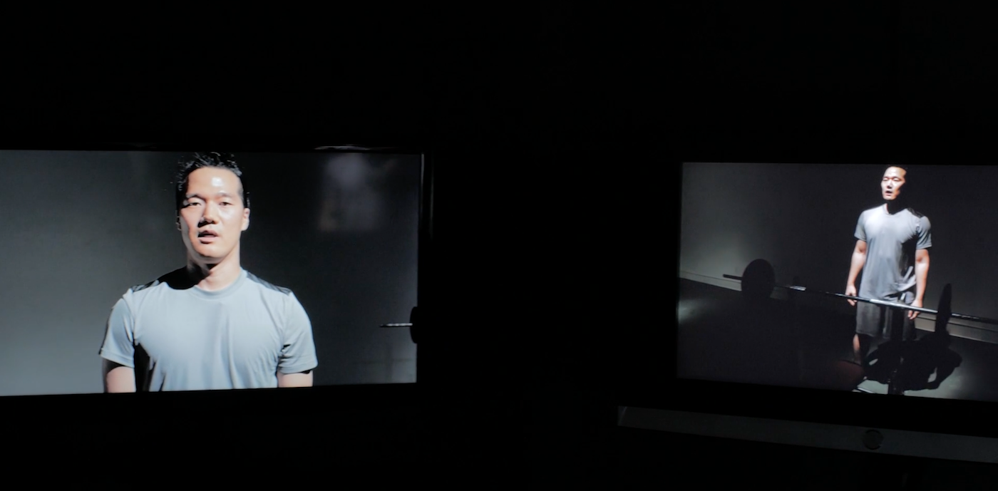 The story narrated on-screen by Choi is one of powerful emotional resonance, that of a soldier who took his own life after a strict regime of military training. Choi wants us to witness the effects of an industrialized, systematic rhetoric of violence, not only with regards to the military industrial system but the geopolitical dynamics surrounding South Korea, which Choi describes as a “contamination” of civil society. On screen, we watch Choi performing a regimen of intense physical training until his breathing is labored; he’s sweating and panting, unable to continue his narration. The strain of physical labor literally overrides his ability to communicate.