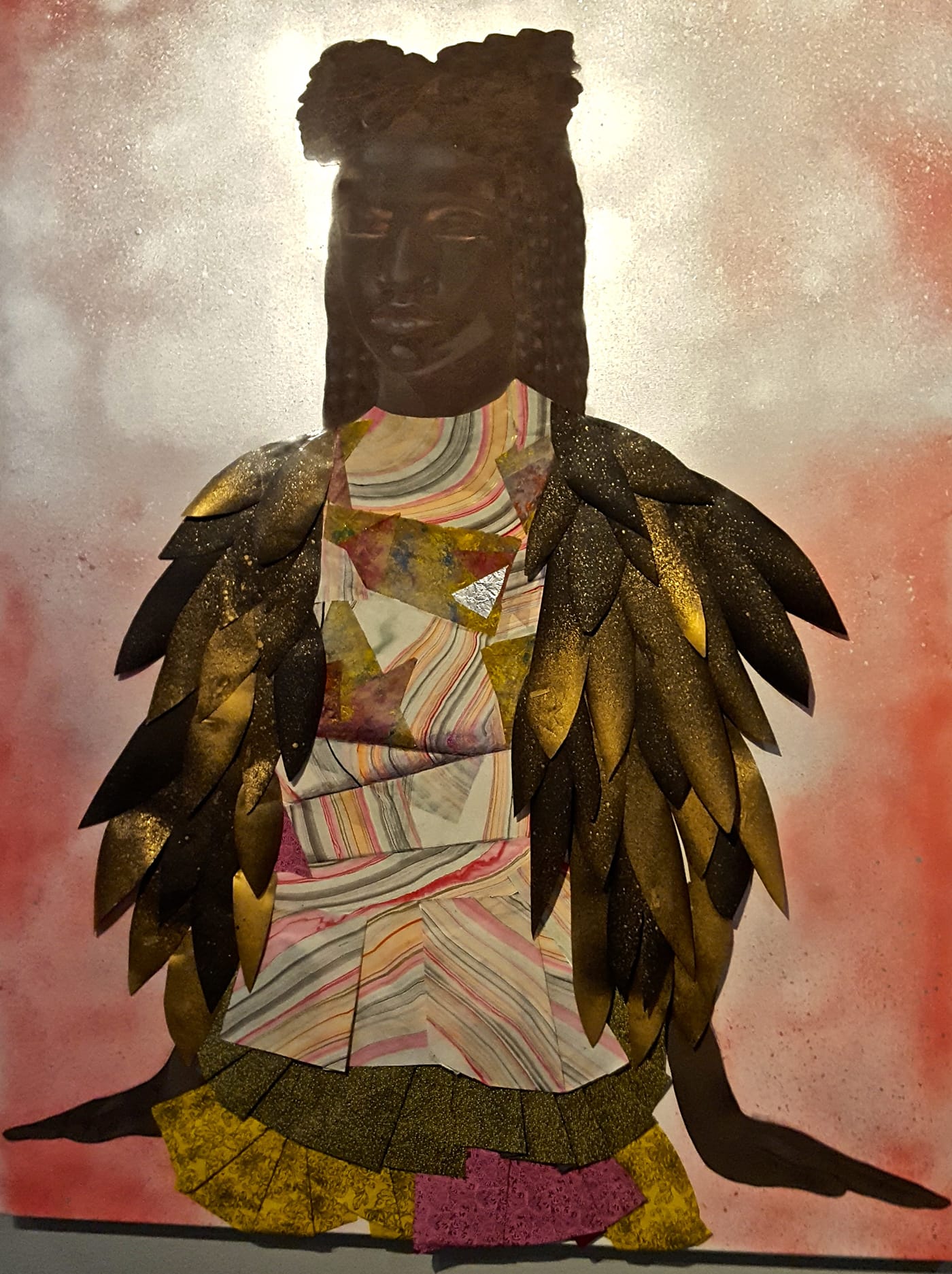 Included in the exhibition is “Laocoön” (2015) by Sanford Biggers, which was the subject of some controversy, in terms of its subjugation of a black body. Here, there is a sense of it being held safely in the space — surrounded by similar faces, watched over in empathy, and on display not for a detached viewing experience, but perhaps as a focus for personal pain. As Detroit critic and Detroit Institute of Arts (DIA) curator Taylor Aldridge said in an email to Hyperallergic: “I’ve been wondering, if we’re going to keep creating artwork that depicts and portrays violence, specifically tied to race and oppression, how can we create gallery spaces that encourage visitors to mourn and lament these human proxies that are represented through visual ephemera, rather than perpetuating environments of just viewing and consumption?”