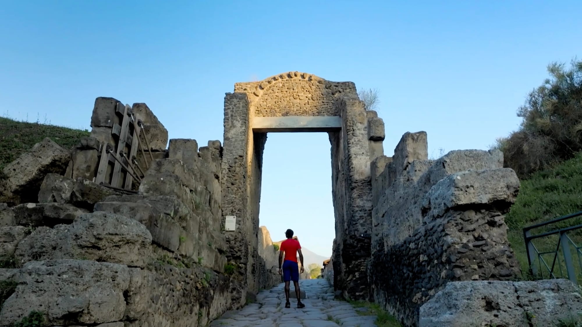 The episode opens near Pompeii at the ancient port of Misenum. The narrator recounts details about the naturalist and commander of the Roman fleet, Pliny the Elder, whose sister alerted him to Vesuvius’s eruption while he lounged in his villa in nearby Bacoli. Underwater archaeologist Michele Stefanile describes the first hours of the eruption’s blast, as noted in letters by Pliny the Younger, the Elder’s nephew. While discussing these crucial early moments, volcanologist Christopher Jackson notes that within the span of an hour and a half, the plume stretched several miles high into the air, according to modern reconstructions. It was visible to many communities in and around the Bay of Naples, and likely an immediate signal that it might be time to flee to safety.