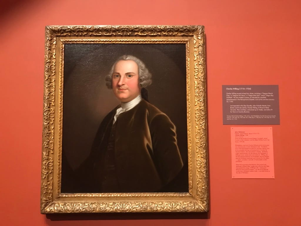The economic benefits of slavery are now explicit on the labels at WAM. Beside a painting by John Wollaston of Charles Willing (1746), a newly added label notes that the Philadelphia merchant owned four slaves. Using a copy of Willing’s will and articles from the Philadelphia Gazette, WAM invites viewers to grapple with the fact that Willing owned: a “Negroe Wench Cloe,” a “Negroe Girl Venus,” a “Negro Man John, and a “Negro Boy Litchfield.” These facts make it harder to deify eighteenth and nineteenth century New Englanders and profoundly alter how we view the portrait.