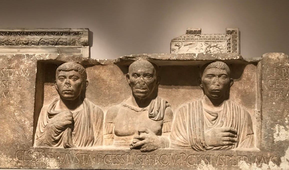 Unlike much early American artwork, enslaved persons and manumitted individuals freed from slavery were highly visibly within ancient artwork. This fact is frequently commented upon on labels in both European and American museums today. Only a few days after my trip to WAM, I travelled to the Museum of Fine in Boston and stood before a large late Republican funerary portrait. The relief represents a slave owner named Publius Gessius, a female enslaved person he owned and later freed in order to marry named Fausta Gessia, and their son, who was enslaved and later freed. His name was Publius Gessius Primus.