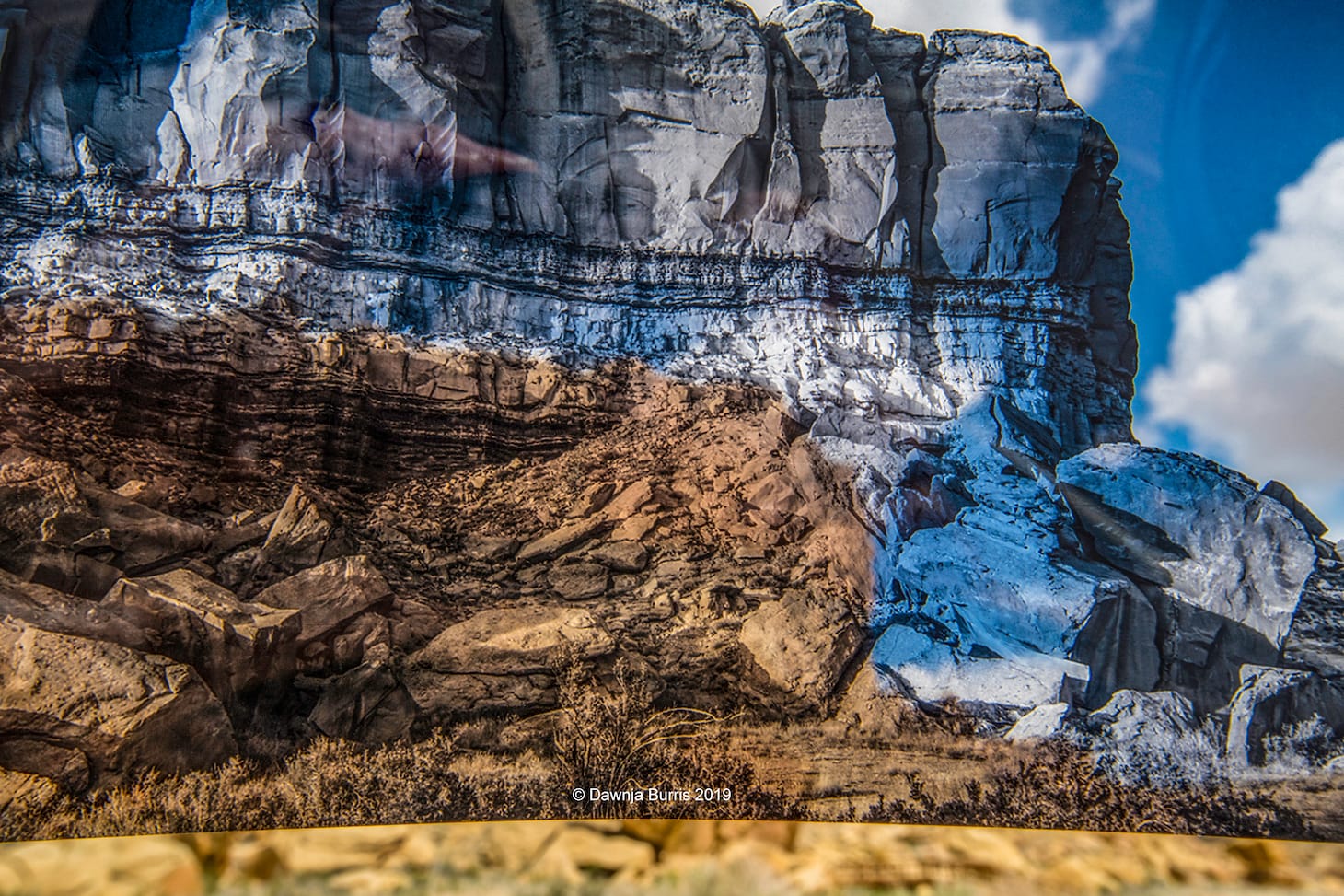 While in residence at Chaco during April 2019, Dawnja Burris created a re-photography project that involved shooting through transparencies from photos taken on a previous trip. The resulting images are enigmatic composites that speak to a mysterious landscape, layered in history. “This, to me, is a metaphor for what we can see, for what can be revealed. The legacy of Chaco is something more than what is apparent on the surface,” she told Hyperallergic. Chaco has long been an inspiration for Burris, and continues to be. “I refuse to call them ruins,” she said. “The place is very much alive.”