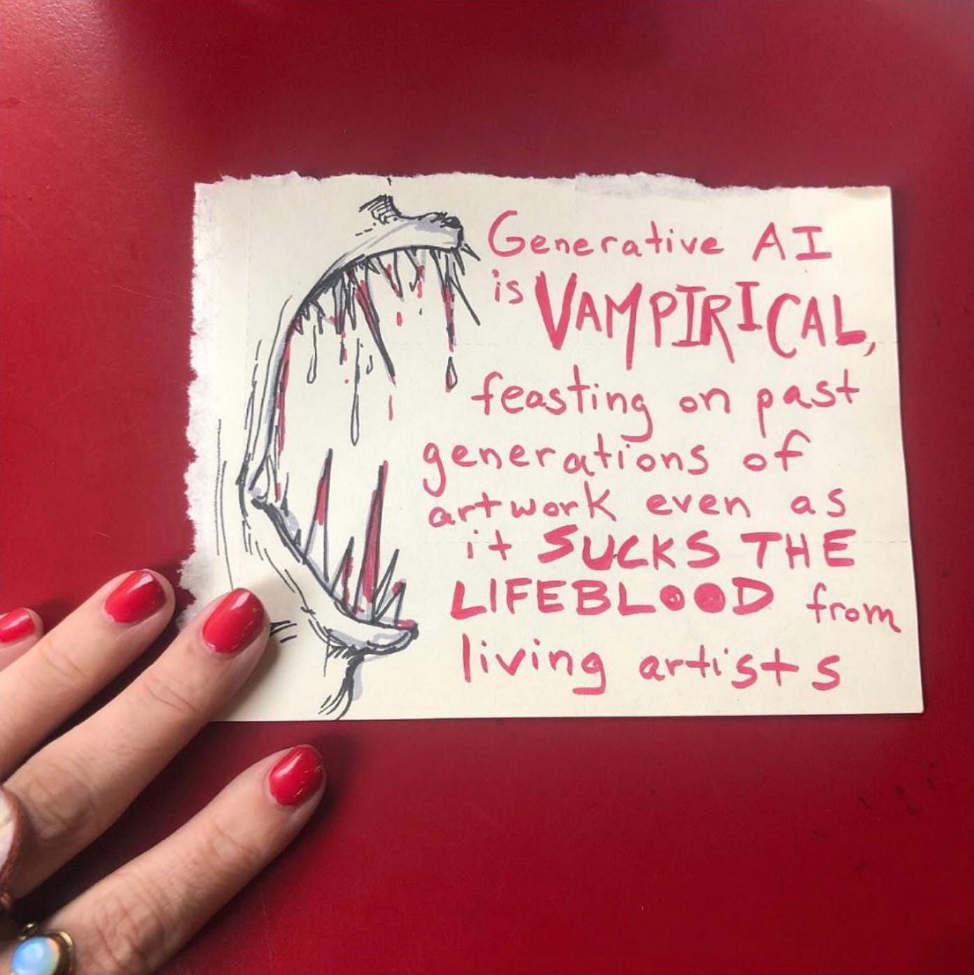 “When AI founders use billions of images to train their programs, the only way they do that is through the profound hatred of the humanities,” Crabapple said. “The contempt for labor and effort and all that stuff that makes us human, for Silicon Valley is nothing but an impediment and a friction.”