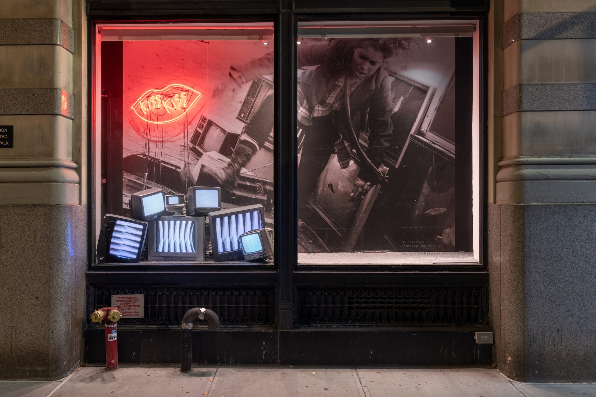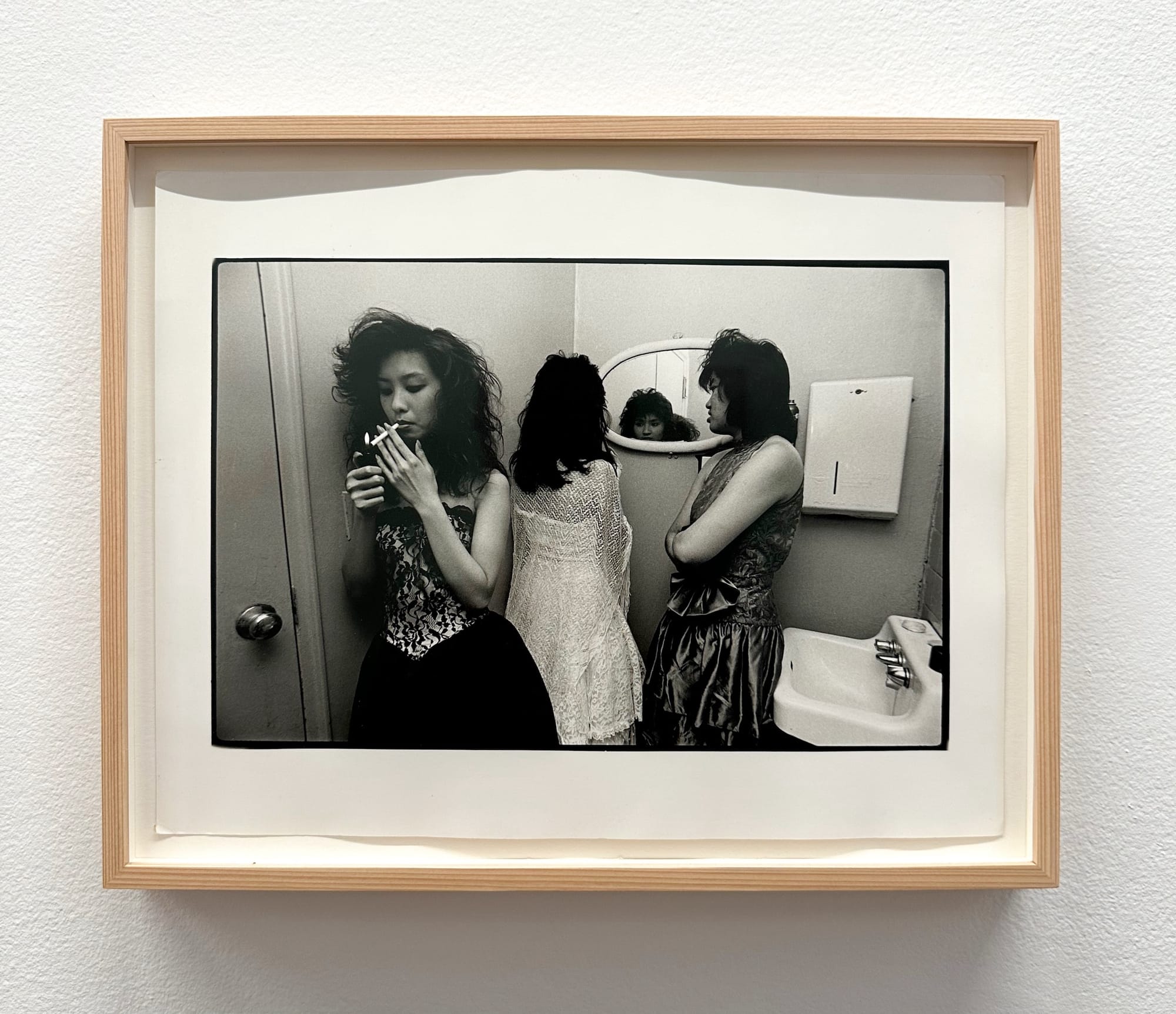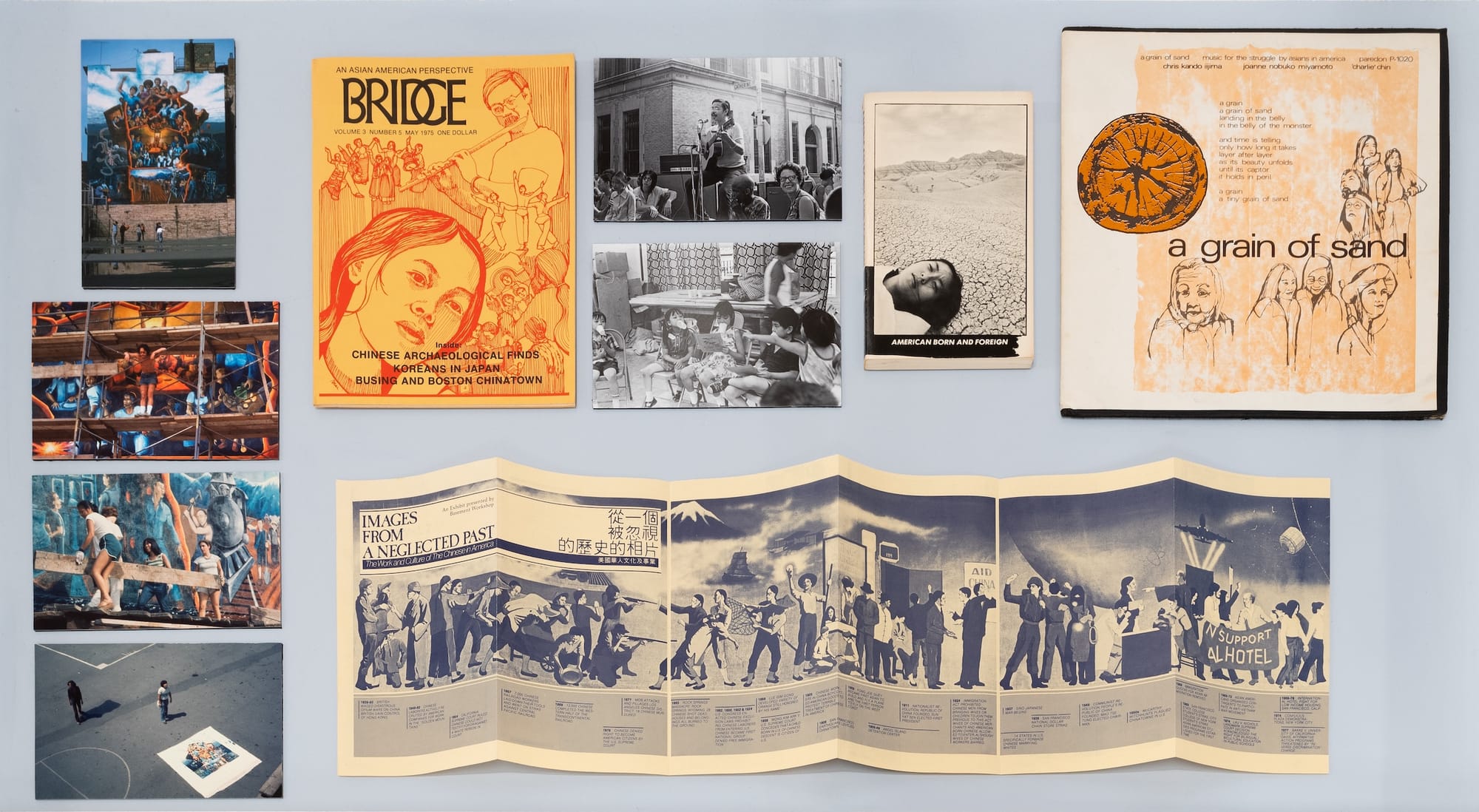 Artist Arlan Huang is another recurring presence, with posters and album covers from his Basement Workshop days, a 1992 sculpture from his time in Godzilla, and a photograph by Corky Lee from his personal collection on view. Printmaker and activist Tomie Arai, also part of Godzilla, is represented by two silkscreen posters made at Basement Workshop. Arai continued her political work by co-founding Chinatown Art Brigade in 2015, and both she and Huang were among the co-writers of the letter that would eventually result in the cancellation of a planned Godzilla retrospective at the Museum of Chinese in America (MOCA) in 2021. The disagreements between the leadership at MOCA, the protestors, and even internally among members of Godzilla offer a succinct introduction to the political disunity of the community, even as all sides would likely say they are working in the best interest of Asian Americans.