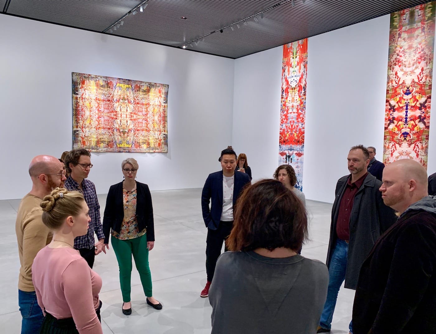 Architectural mistakes are a reflection of the Shed’s hamstrung inaugural programming, which trades the experience of art for the spectacle of superstar-driven events. Gerhard Richter has made cheap Rorschach wallpaper and a couple decent tapestries to complement a choral piece by composer Steve Reich whose sonorous heights are sucked dry by the poor acoustics of the vacuous gallery space during the press preview. (Trisha Donnelly will showcase a new project in another gallery, but this was not available during the press preview.) Prompted by curator Hans Ulrich Obrist, artist and filmmaker Steve McQueen will direct a five-night concert series devoted to the history of African-American music in McCourt Hall. Two floors above, the inestimable poet Anne Carson will deliver a new play with music written for the preternatural talents of Ben Wishaw and Renée Fleming.