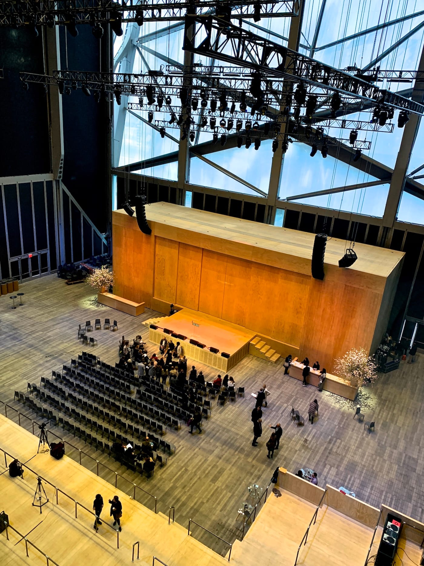 It’s two days before the Shed’s grand opening on April 5 and plywood floorboards still carpet some areas of the $500 million complex. Electricians are scouring the building for defects, installing elevator buttons and tweaking escalators. The distant sound of buzzing and the thwacking of sledgehammers bores into the building’s two theaters, two galleries, and its skylit multipurpose room. There is a frantic pace to preparations, and I can’t tell if it’s because the organizers are excited for their grand opening or terrified by the impending backlash.