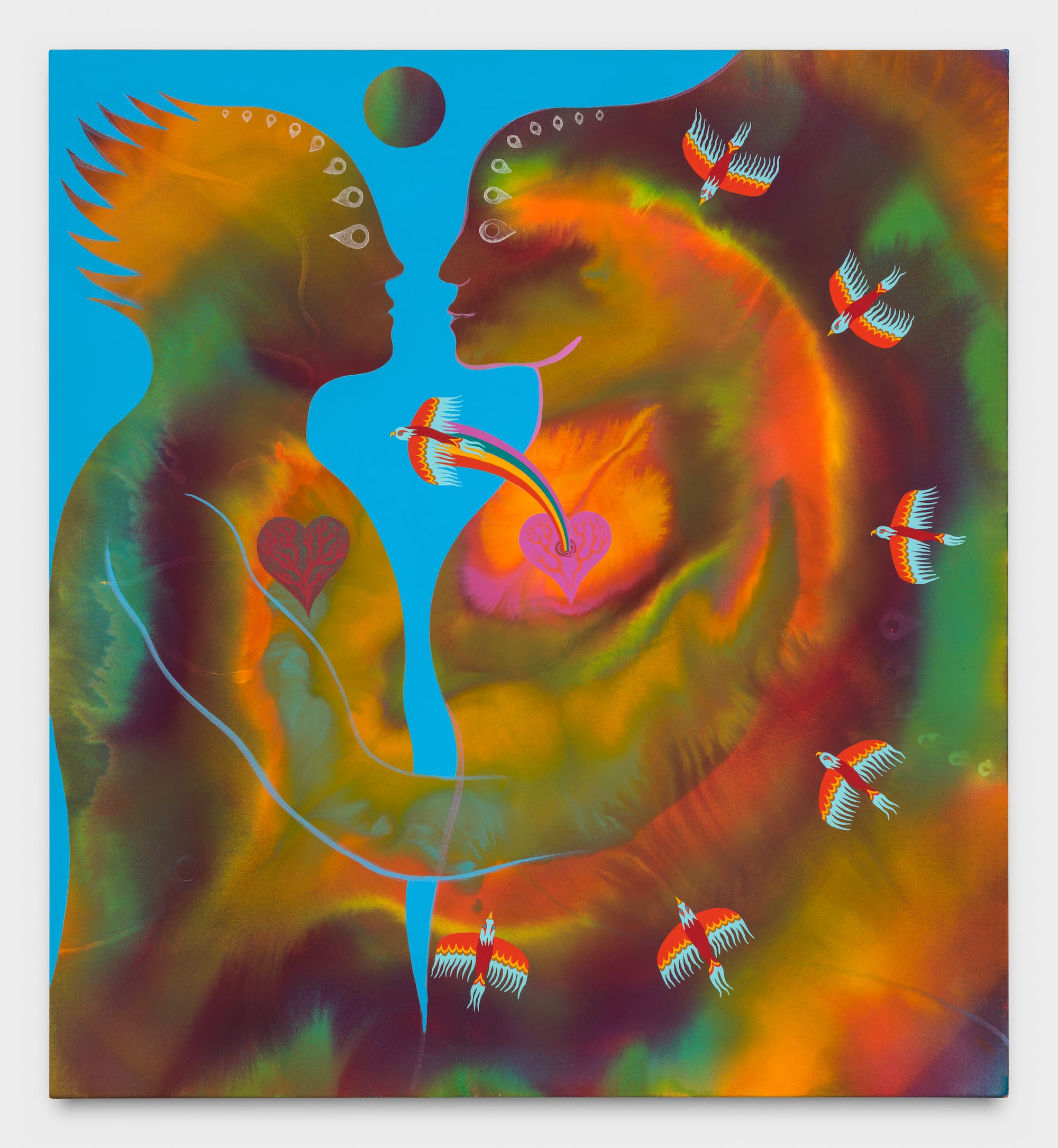 Johnson contributed his 2023 work “Oh My Heart,” which will be sold as a limited-edition print. In his words, the piece is “about interconnectivity and duality, the idea that we are all one,” and is not “specifically a political work.”