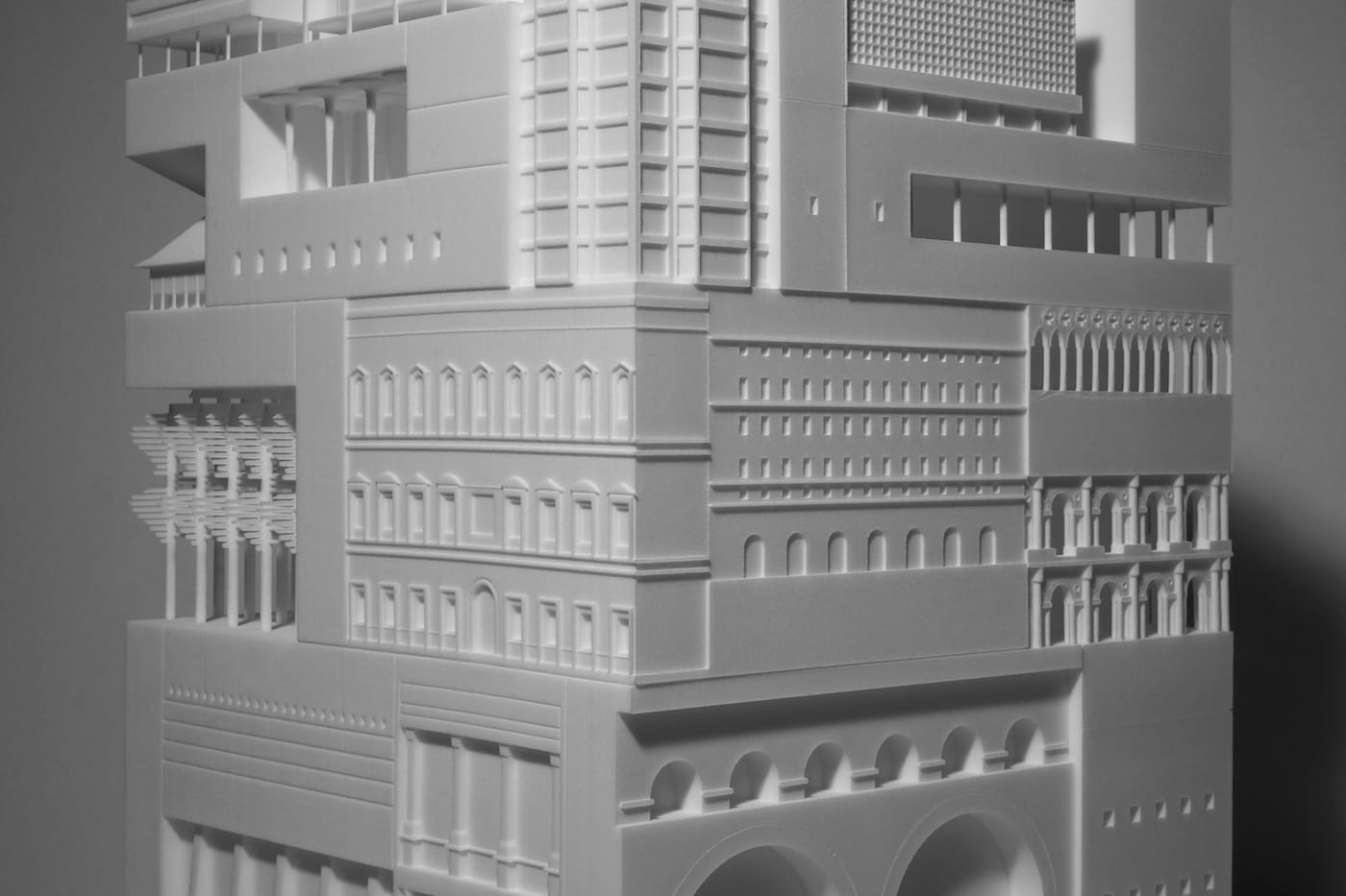 Printed as a single object that itself resembles a funky tower, the model includes architectural feats such as the great hypostyle hall from the Karnak Temple, the nave of Reims Cathedral, and a mini version of Chicago’s Reliance Building — revolutionary in the 1890s for its glass-covered exterior.