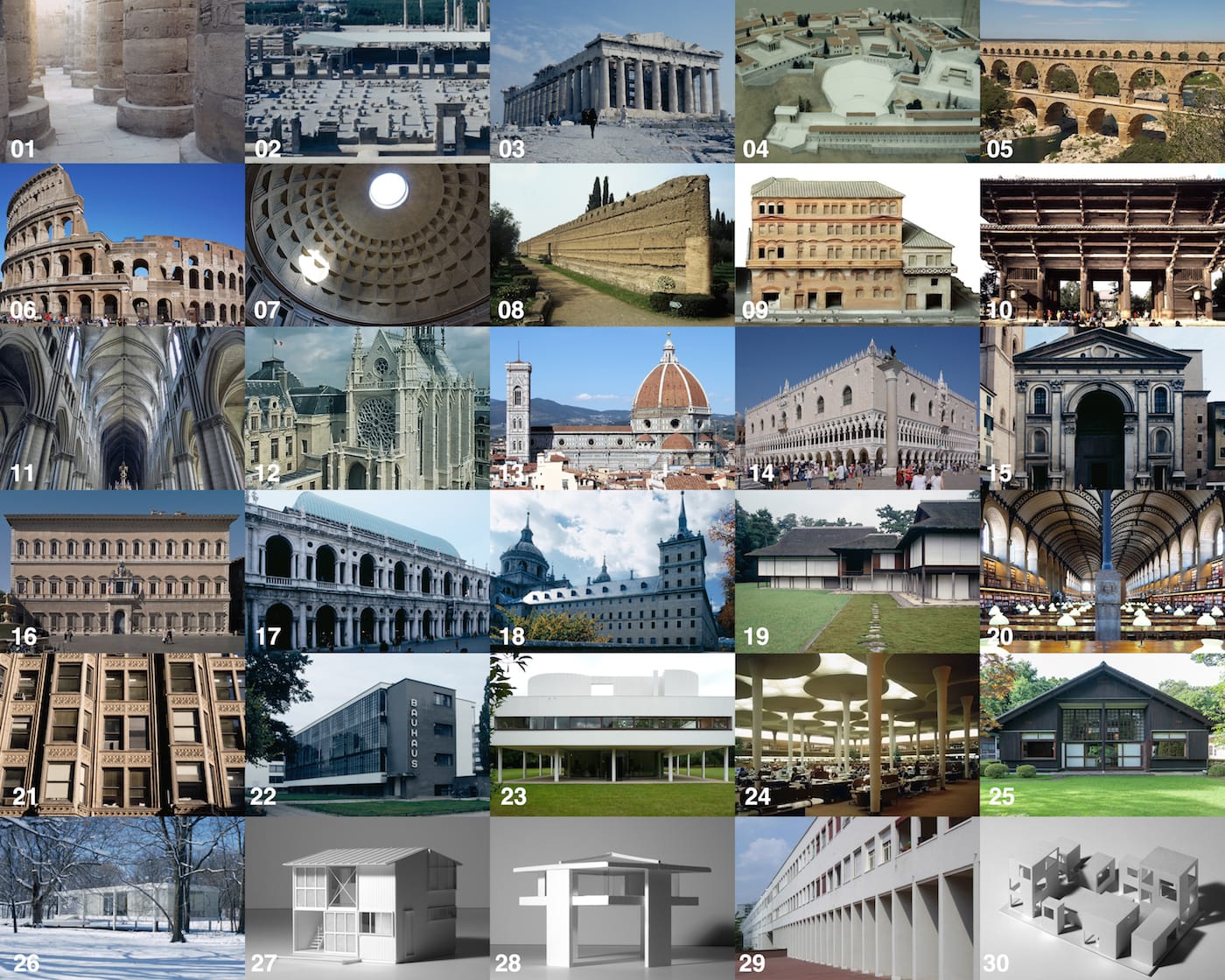 “The piece reproduces the characteristic elements of each building such as the façades, exterior forms, interior spaces, and structures, at 1:300 scale,” Matsumoto writes in a statement. “While it is not a comprehensive overview of architectural history, it does illustrate some significant trends over time, such as the shift from massive to minute forms and from enclosed to open spaces.”