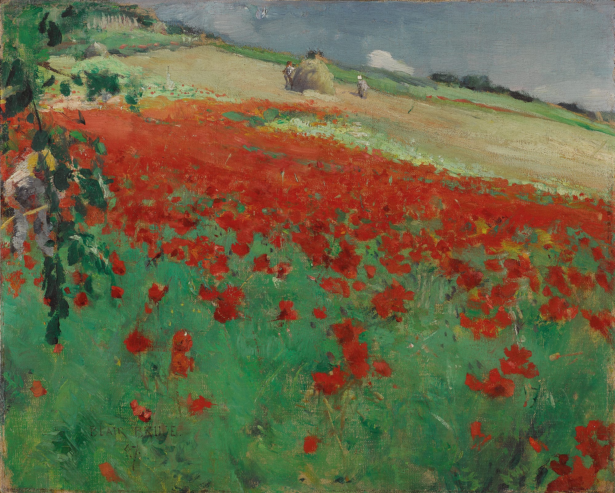 LAUSANNE, Switzerland — A windswept hillside seen on a sunny spring day, its bright red poppies rendered in sprightly strokes of paint, a mottled smudge of a haystack in the distance: It’s a classic French Impressionist scene. Or is it? The name William Blair Bruce (1859–1906) is sketched faintly in the bottom left corner. Bruce — who studied at the Académie Julian in Paris, spent time with Monet at Giverny, and spent most of his adult life in Europe — was born in Hamilton, Ontario, near Toronto, and is known as Canada’s first Impressionist. But that title should actually go to Frances Jones (1855–1944), a painter from Halifax who preceded Bruce in Paris by a few years, and was the first Impressionism-inflected Canadian to exhibit at the Salon de la Société des artistes français in 1883.