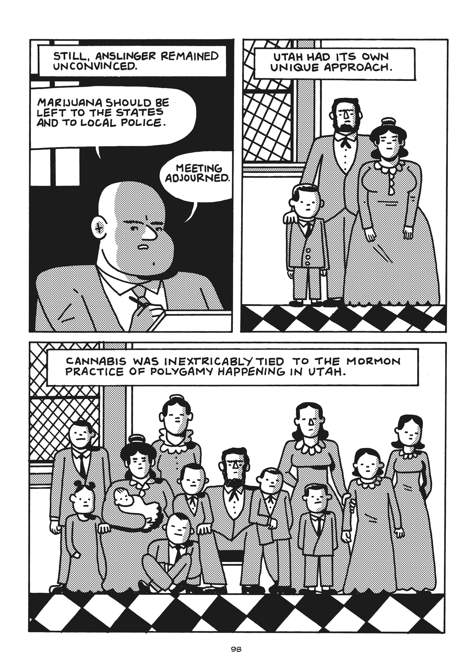 Those prone to dismissing comics as a legitimate narrative form might mistake Cannabis: The Illegalization of Weed in America for a work of straight humor: The frequent exclamation points and worming motion lines recall Sunday newspaper strips of yore. Anti-drug lawmakers, whose ballooning, melon-shaped heads (and uniformly compressed facial features) appear ready to tip over when they’re not dangerously undersized. And there are lots of people getting baked. Just as his mostly somber 2014 graphic biography of wrestler “André the Giant” is fitted with punchy gags, Brown’s new book is definitely funny, even if the subject isn’t much of a laugh at all. Cannabis is more of an exploration of how racist propaganda helped produce laws that have unfairly punished minorities and engendered anti-immigrant sentiment in the US for as long as the plant has been here. Bigoted ideologue Harry Anslinger, way back in 1930, couldn’t have played a larger role in that.