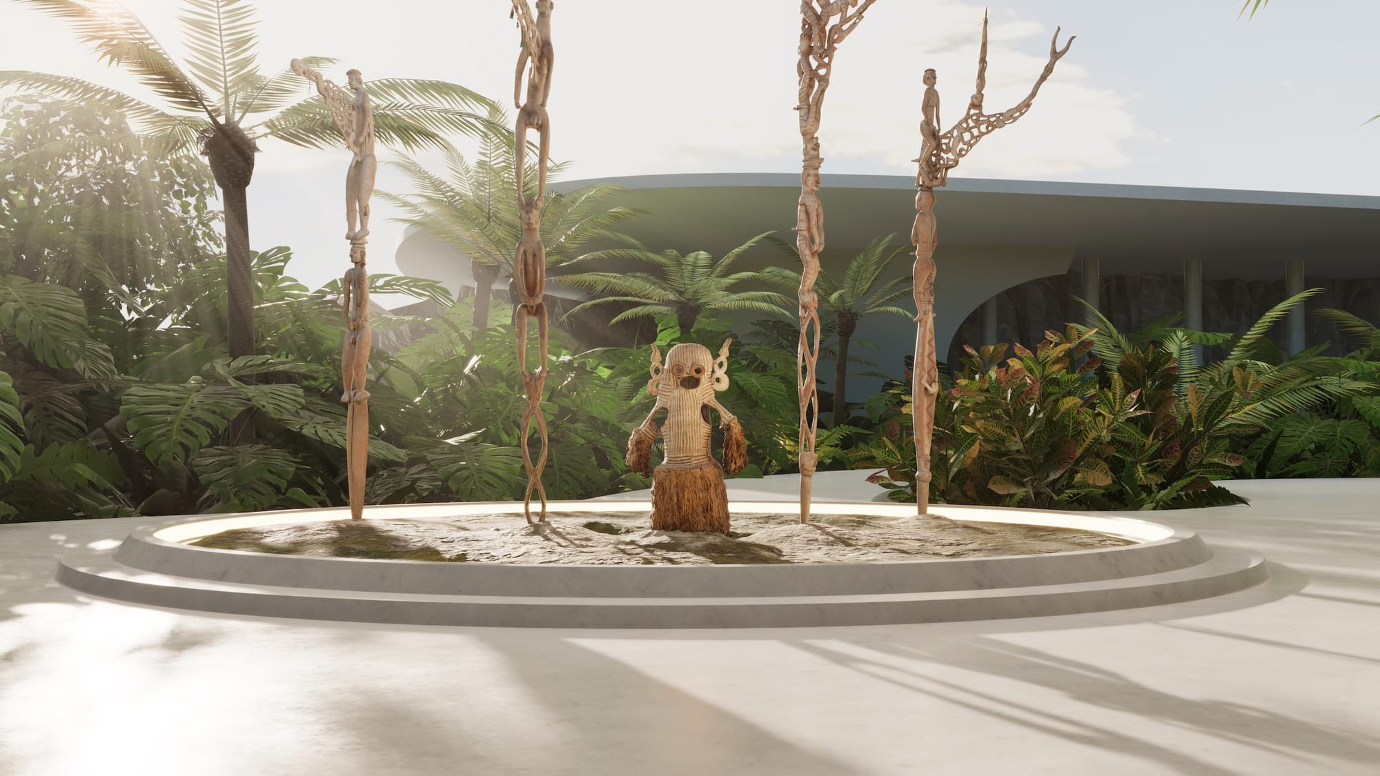 Meanwhile, in the simulation of the Oceanic art galleries, developed in collaboration with The Met’s Curator for Arts of Oceania Maia Nuku, virtual visitors are greeted by a floating rendering of "Female Ancestor Figure," dated to the 16th to the 19th century by an unrecorded Inyai-Ewa artist.