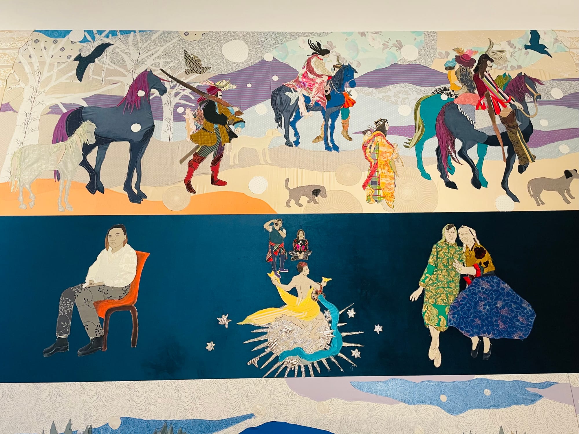 Two other national pavilions in the Giardini particularly reflect the current moment, emotionally and politically. These are the Polish and Australian Pavilions. Both, to my mind, challenge the fraught mythology of the construct of national identity that is not only part and parcel of the Biennale itself but also the global realities of late-capitalist, settler-colonial, white supremacist patriarchy that breathes down our collective necks daily. Co-curated by Joanna Warsza and Wojtek Szymanski, the Polish Pavilion presents the work of artist Małgorzata Mirga-Tas; a redux of the frescoes at Ferrara’s Palazzo Schifanoia. Here, Mirga-Tas reimagines the zodiac imagery and art historical panoramas presented in the frescoes as a cycle of Romani histories of movement, activism, and daily life. The new work includes portraits of family and inspiring figures in a central band that encircles the space. Above these are art historical scenes of Roma people re-imagined to celebrate their culture, traditions, and transnational movement; the bottom band is dedicated to quotidian moments of daily life, women sewing, and children playing. And it is all made from fabric pieced together, some actually from the people depicted. These appliquéd fabrics contain not only the DNA of those who once wore them but also the traces of where they were originally fabricated, speaking to the transcontinental and interconnected nature of contemporary existence.