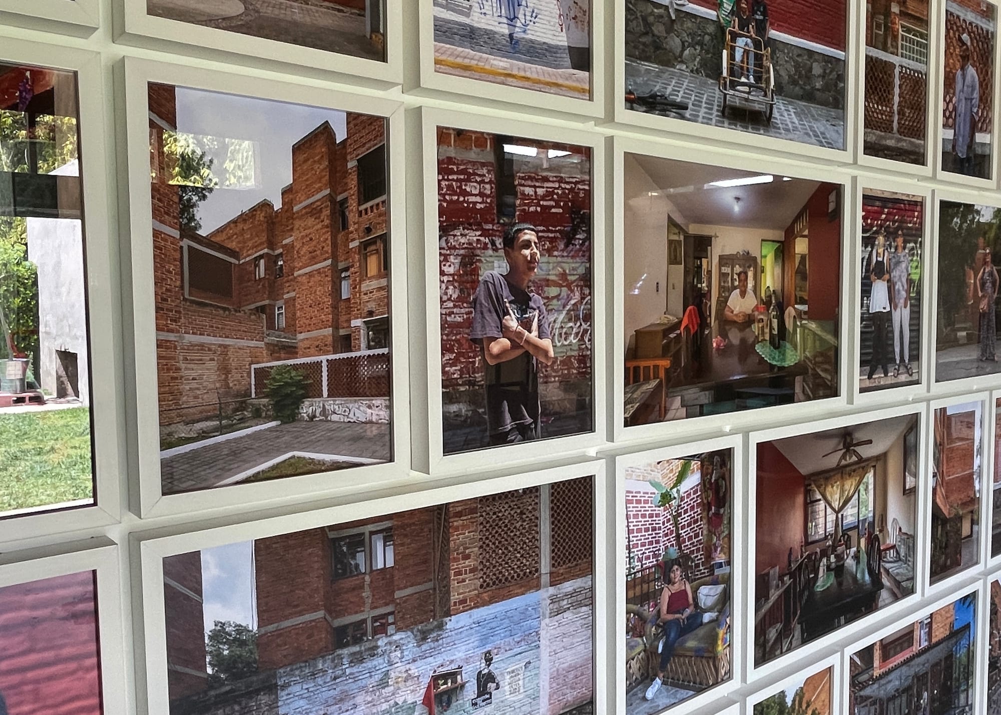 Because Zohn primarily designed public spaces like government buildings, libraries, and housing projects, his structures continue to thrive with life. Onnis Luque captures the daily activities of modern Guadalajarans in “INFO33” (2022), all of whom live at Unidad Habitacional CTM-Atemajac, government housing Zohn completed in 1978. The youngest inhabitants are now three generations apart from the original transit workers who received apartments. Luque’s photographs contrast the older generation, politely standing with hands in their pockets, staring at the floor or seated at a dinner table, hands clasped, with the more flamboyant younger generation, posing with their hands raised, flashing tattoos, giving the best angle of their fits.