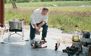 That Nadin left the New York art world to pursue a solitary life of farming and manual labor is only partially true: let’s not forget that Nadin teaches at Cooper Union and has owned a house in the West Village for the last 30 years. He has provided for himself and his family with the fruits of his own labor, but also sold pigs to the Breslin. I point out these facts not to denigrate his story, but merely to disrupt any notion of the artist as returned mountain man strolling down from the mist-covered hills. Though Nadin has made changes to the way he thinks about and approaches art, his underlying core of beliefs is the same. There is the same tension between man and nature, between the system and the individual that is visible in his early works.