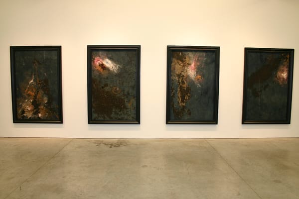 Like Nadin’s writing, the exhibit serves like a wormhole into the artists head, giving an idea of his life and values. Above all else it is a momentary respite from the city, a homemade spiritual remedy for tarmac ailments. Nadin often states that he is interested in capturing experience and consciousness instead of being concerned with the “ocular” properties of art. What seems strange to me about this is how carefully his paintings seem to have been framed, how baroquely dramatic the dark and light contrasts truly are. Next to the paintings the rest of the work seems slightly unfinished; one wonders what might come to fruit were the artist’s focus a little less broad, were he a bit more concerned with how things look.