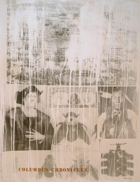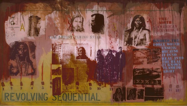 The Carl Beam retrospective now at the National Museum of the American Indian Heye Center in Lower Manhattan could be a response to the museum itself. Located in the imposing Alexander Hamilton US Custom House, a monolithic reminder that New York City was originally built on European immigration, the museum presents artifacts and art by North America’s first people. Beam’s work likewise was always aimed at juxtaposing the modern culture of North America, a transformation of the country that he marked with the arrival of Columbus, with the traditional imagery of the American Indians. Neither the museum nor the influential Canadian artist’s work offers much harmony between these two clashing worlds, but in the resulting collage of Beam’s work is an engaging sort of turbulence.