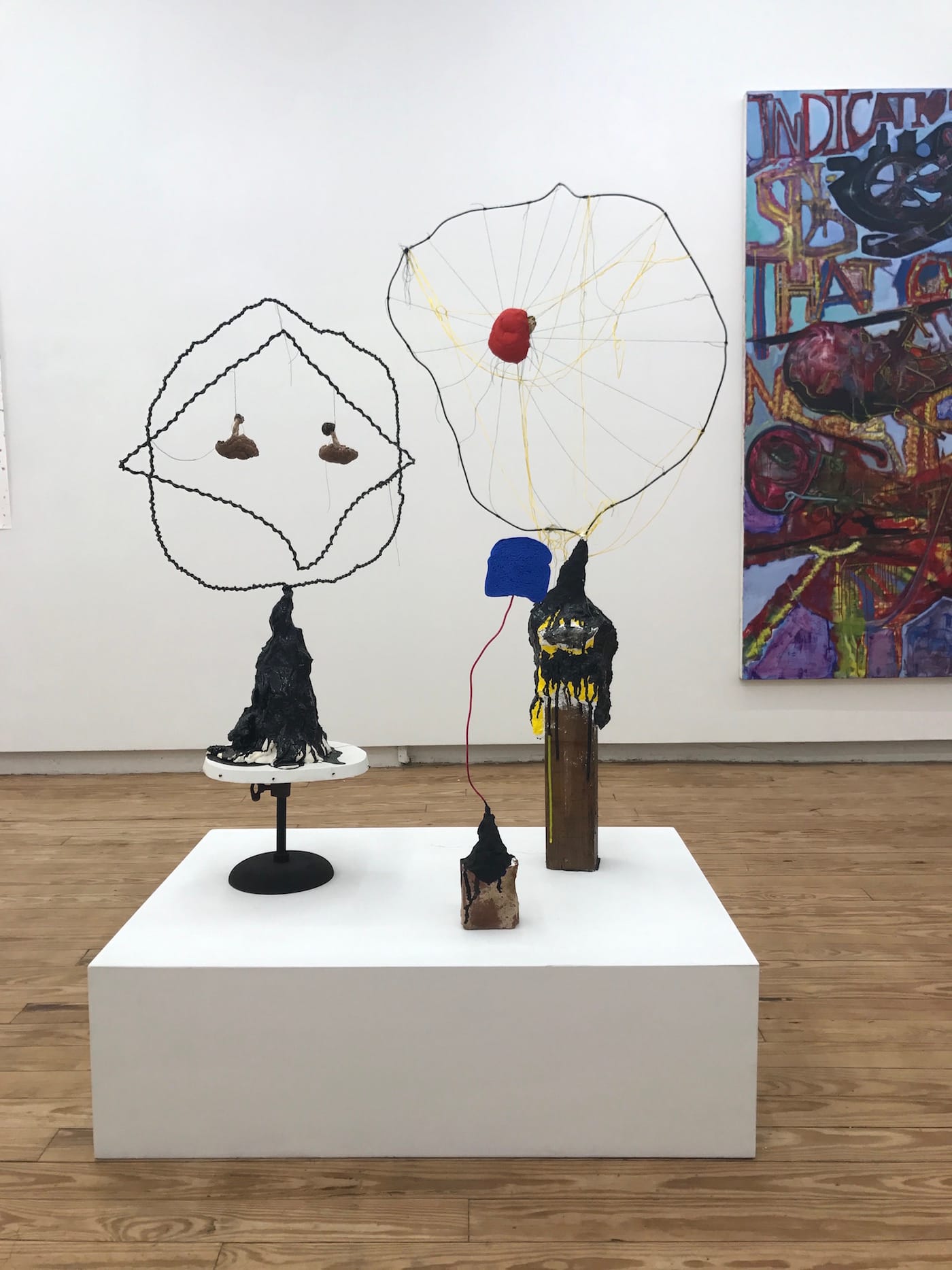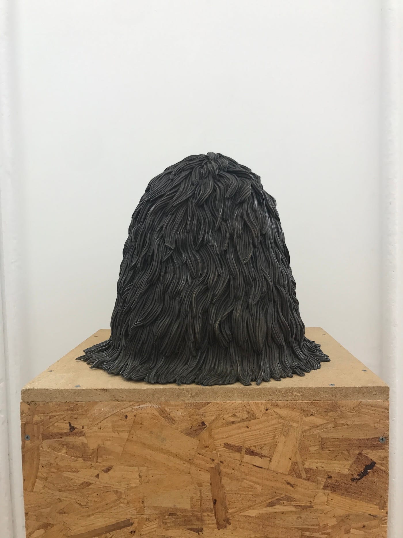 I don’t recall ever thinking about Cousin Itt, the hairy creature that appeared in the TV show, The Addams Family, while looking at work in an art gallery. What prompted me to dig up a pleasantly absurd memory from my absurdly unpleasant adolescence was a bronze sculpture aptly titled “It” (2004), by Carl D’Alvia. “It” is included in the exhibition, CarlJackieSteveMichelle, at Helena Anrather (June 29 – August 5, 2017). The fact that you are reminded of a TV show popular more than half a century ago, after ascending the stairs of a building without an elevator on a hot summer day, speaks to the surrealism of everyday life as a way of addressing the waves of disenchantment constantly washing over us.