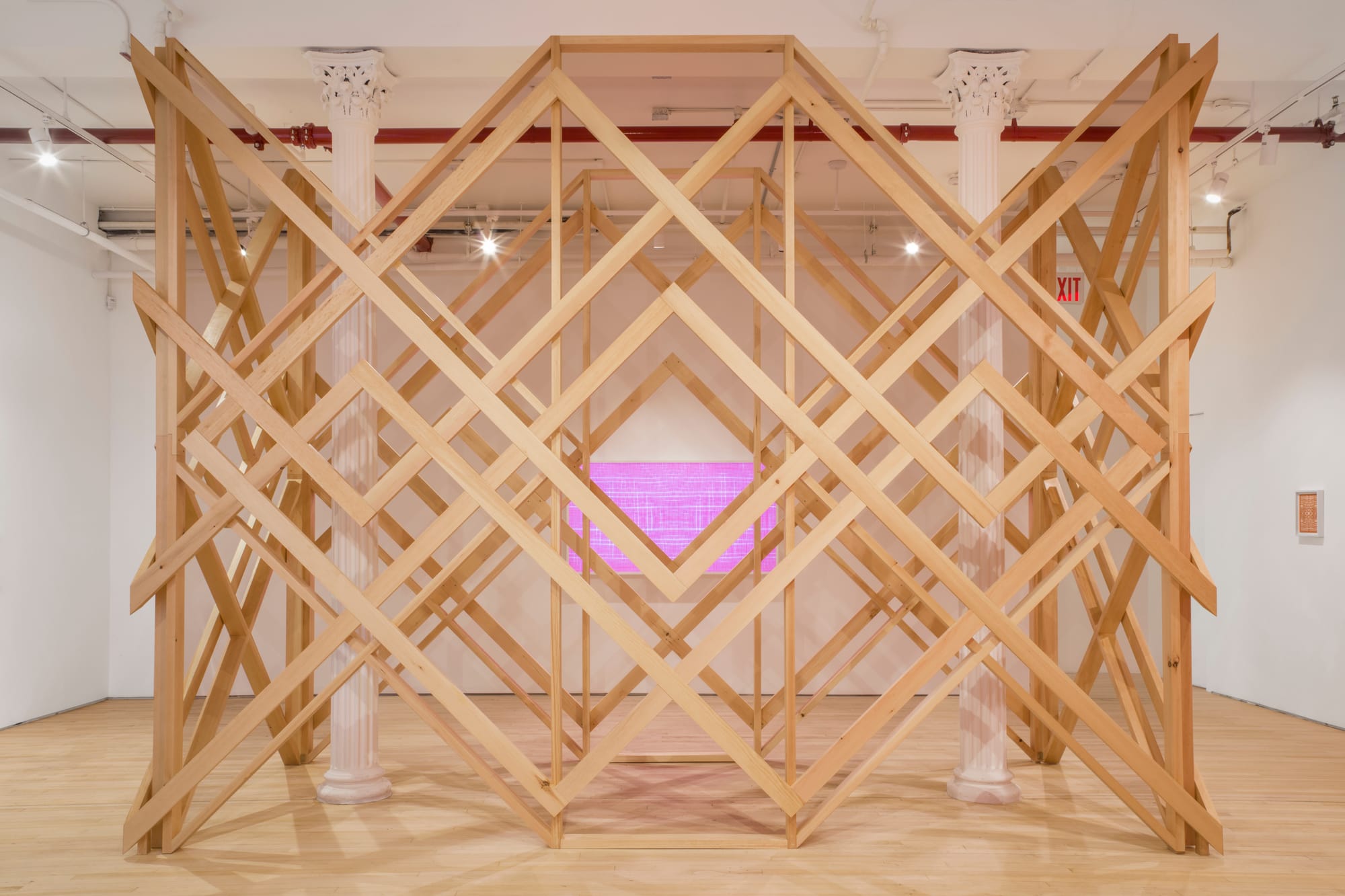 The structures she makes help Monnet reclaim space and agency. “[The installation structures] were a way for me to speak about the housing crisis that a lot of Indigenous communities across North America are facing,” she told me. The geometric repetition of the works gives way to visual readings that recall maps, digital codes, and precise mark-making — situating the work both within long-running cultural practices and future realities.