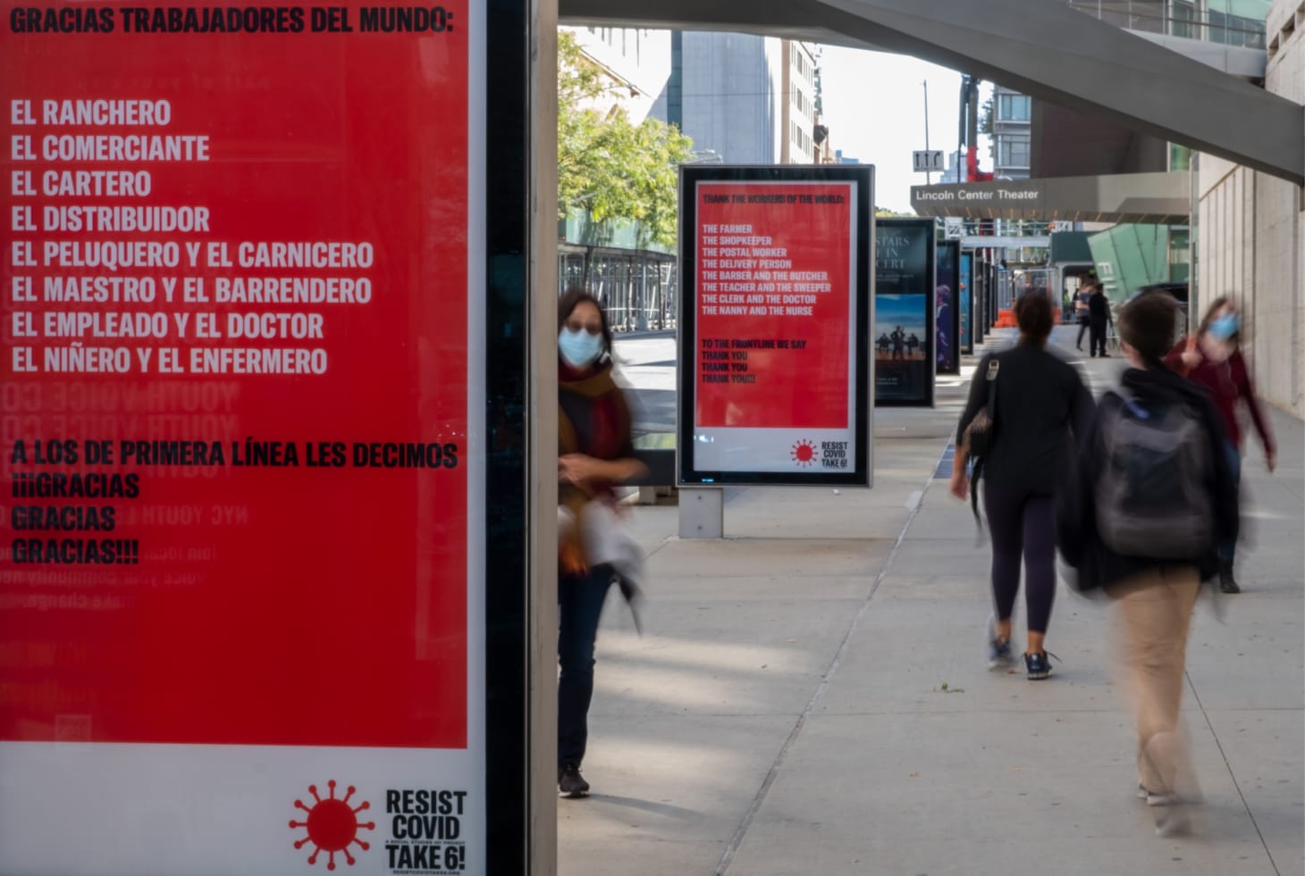 In addition to the Lincoln Center presentation, Resist Covid / Take 6! installations are currently up at the Apollo Theater, BRIC, the Brooklyn Museum, and the New School in New York.