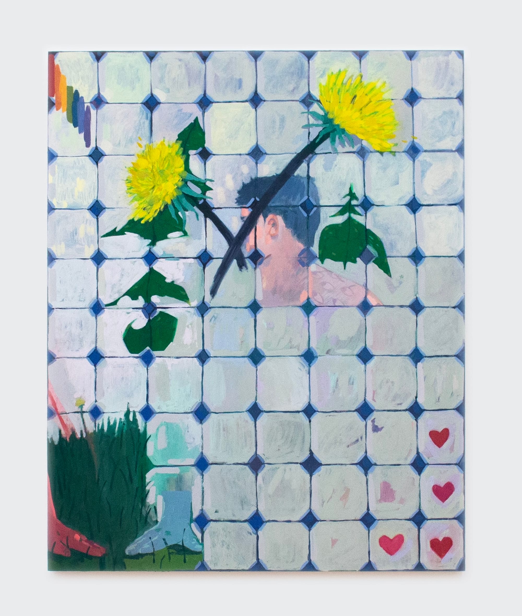 The canvases of Cassidy Early, a trans nonbinary painter living and working in Chicago, exude a sense of peacefulness and strength. In "Early After" (2022), the likeness of a short-haired figure looking away is reflected on rows of tiles inspired by those in their mother’s bathroom; the self-portrait is partially obstructed by the stems of two dandelions, flowers often considered garden weeds that nevertheless symbolize consistency and protection for the artist. The composition juxtaposes different views and geometries, embracing perspectival ambiguity. Like many of Early's paintings, it invites us to simultaneously interrogate and accept the image in front of us, capitalizing on the discoveries that occur in the space of this tension. In the interview below, the artist delves into their experience of grief, Dungeons and Dragons, and how art organizations could better approach the work of individuals who don’t fit into a strict gender binary.
