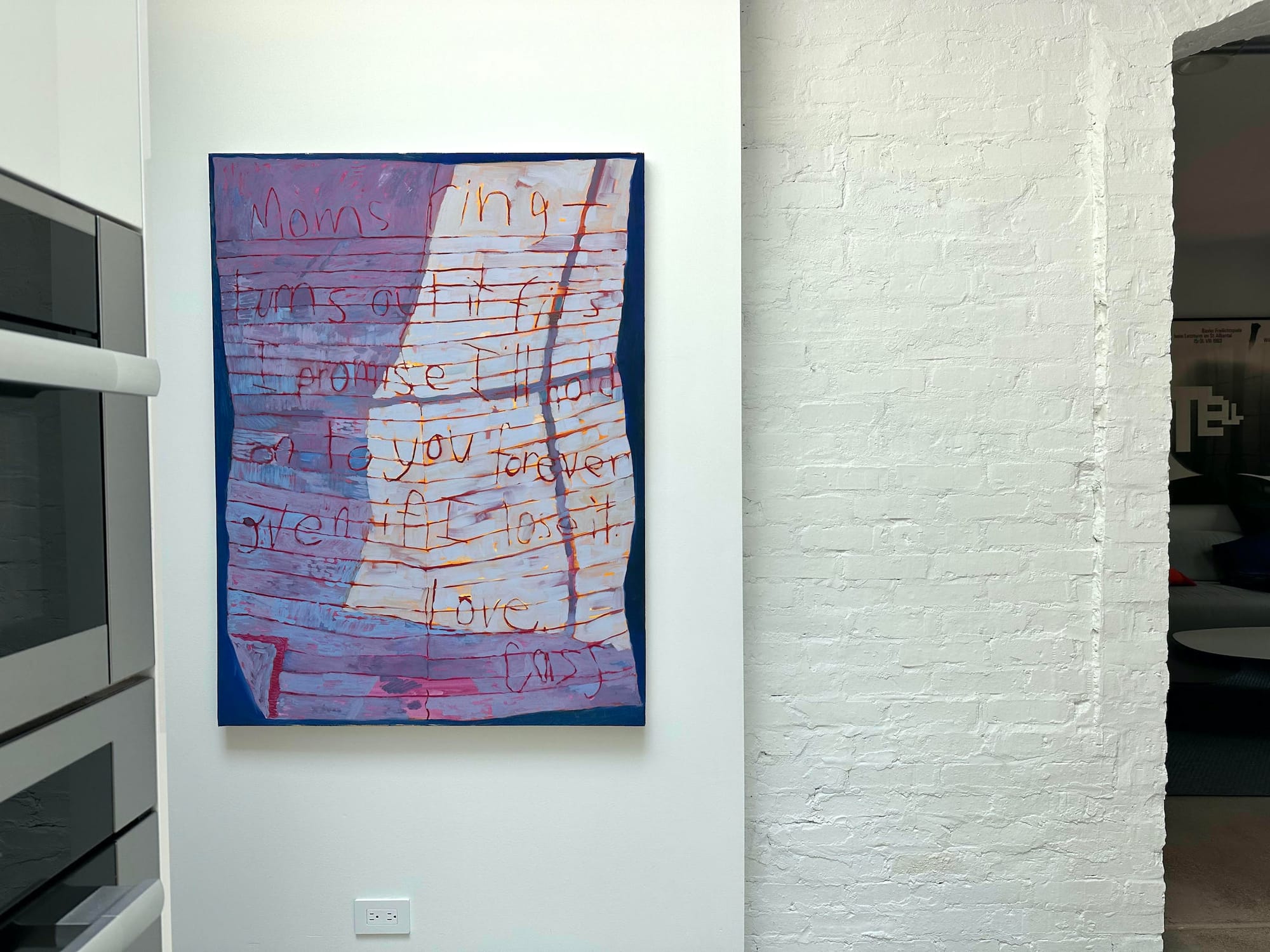 Cassidy Early: Over the last three years I’ve been making work about grief and grieving through the lens of still life and some embedded self-portraits. One of the first paintings I made after my mom died, "Mom’s Ring" (2021), references a letter from my child self to my present — a letter of soft reassurance that things will be okay.